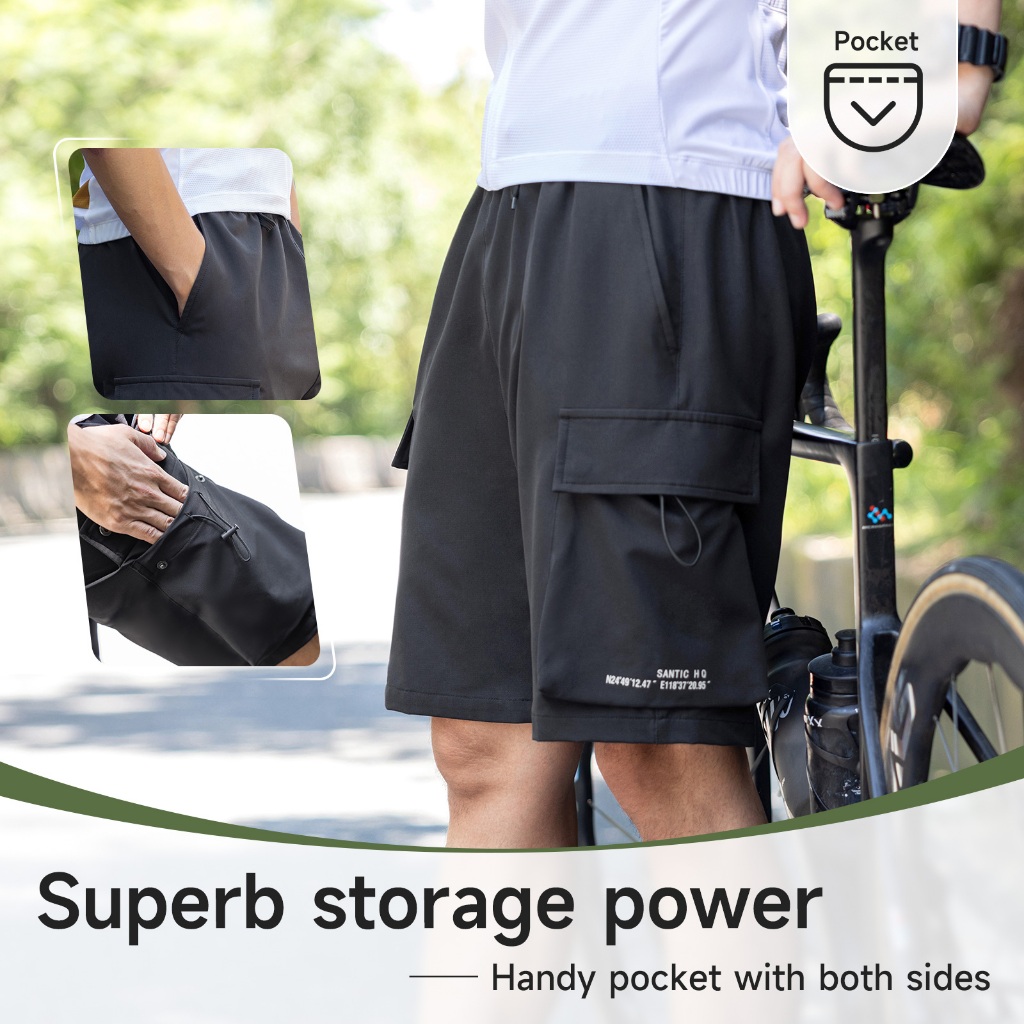 Santic Celana Sepeda Pria Cargo 4D Padding Cepat Kering Bernapas Kantong KM24C05188