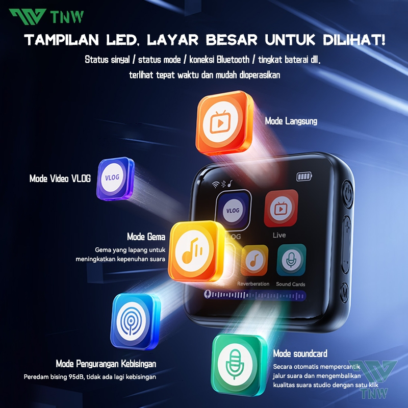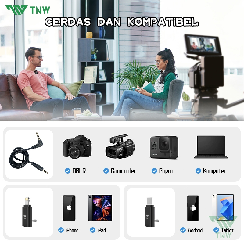 MICROPHONE TNW N15 WIRELESS CLIP ON MIC HP DAN KAMERA LAVALIER MIKROFON UNTUK LIVE VLOG TIKTOK YOUTUBE
