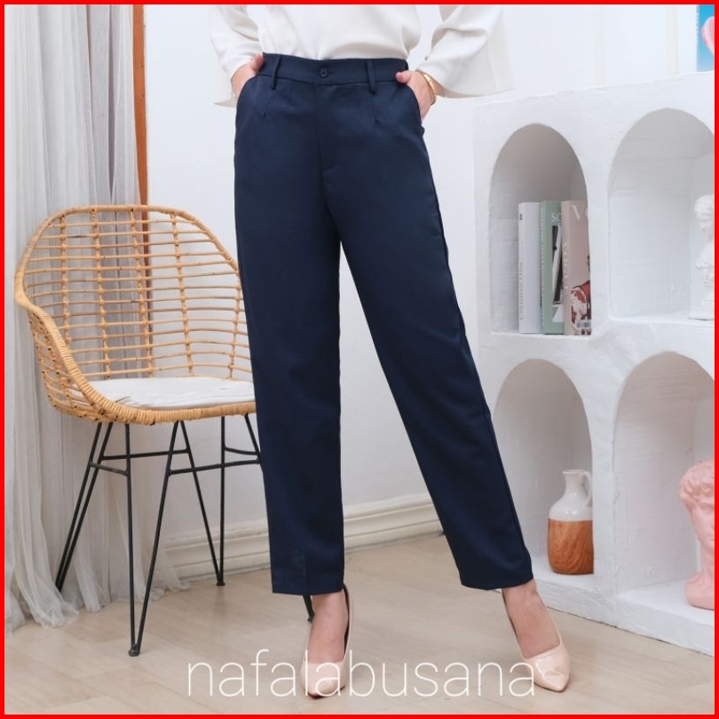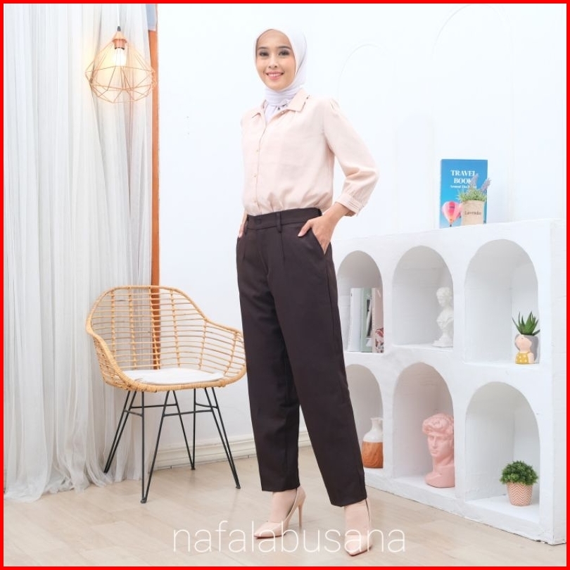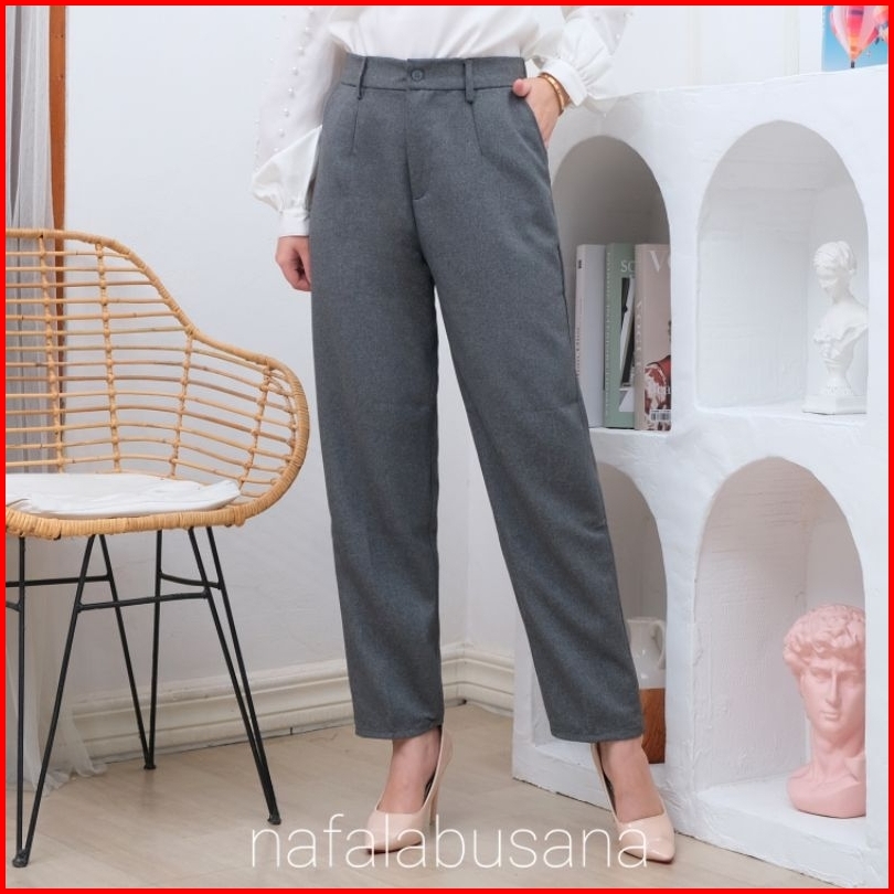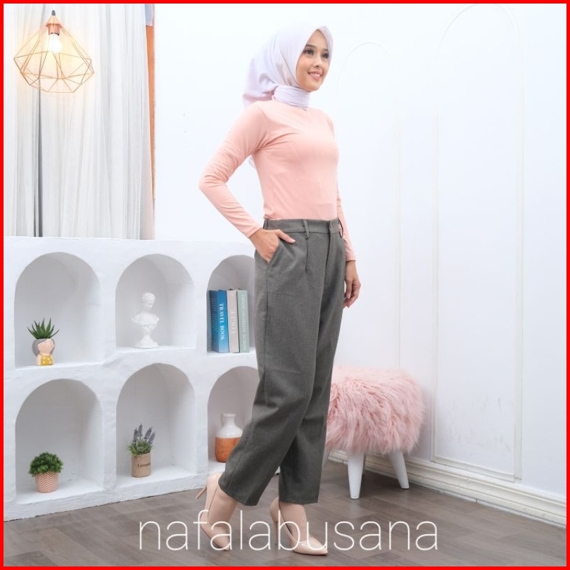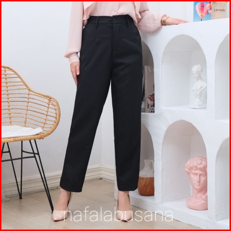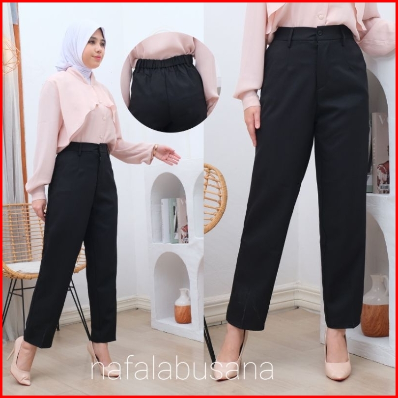 Celana Bahan Kerja Wanita Karet Belakang Haighwist Kantor Formal