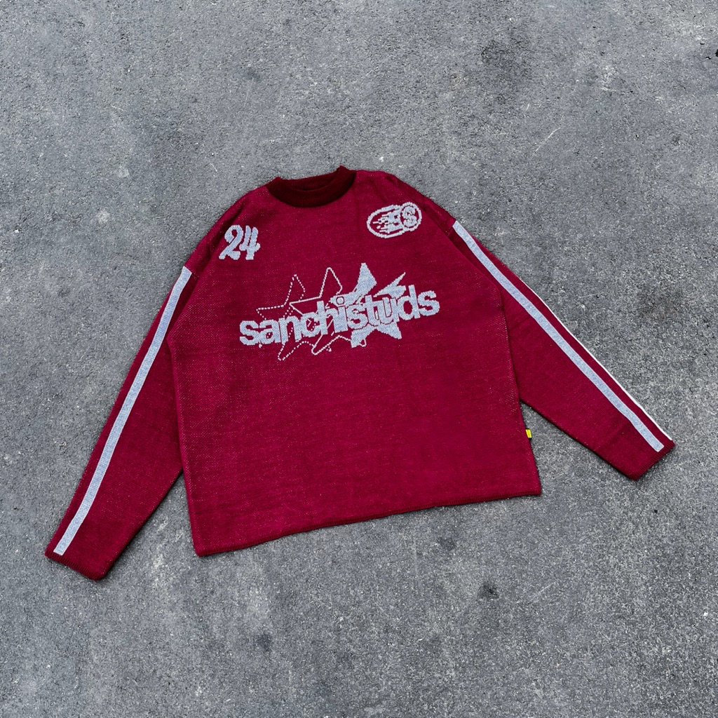 Sanchi Studios - Knitwear Boxy Red Star Football Knit Sweater Uni / Sweater Rajut Pria & Wanita