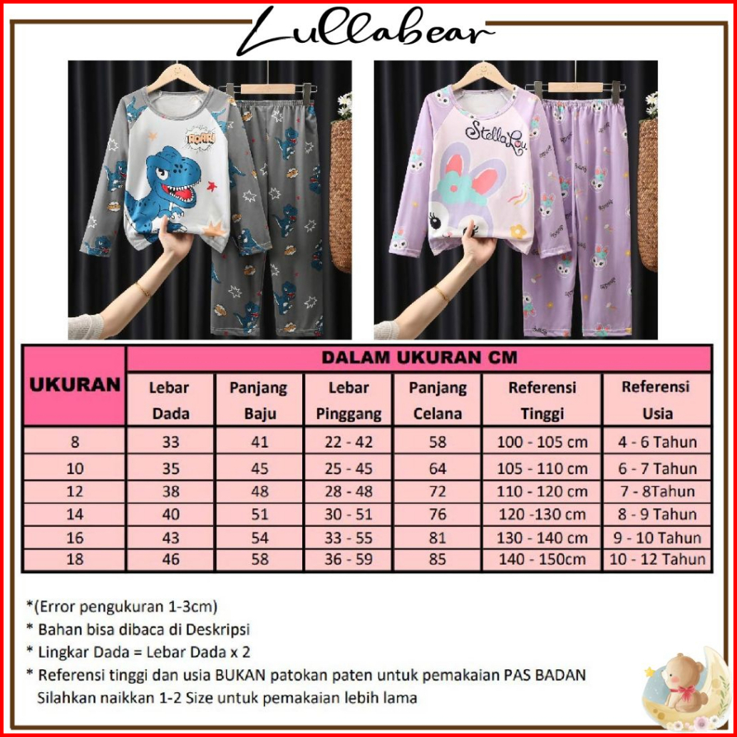 Lullabear - 5 Piyama Lengan Panjang Celana Panjang Anak Cowok Piyama Anak Murah Lucu Set Baju Tidur Panjang Anak