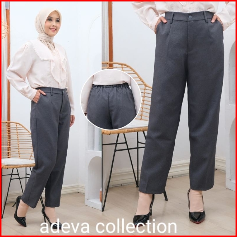 Celana Bahan Kerja Wanita Pinggang Karet Belakang Celana Kantor Premium