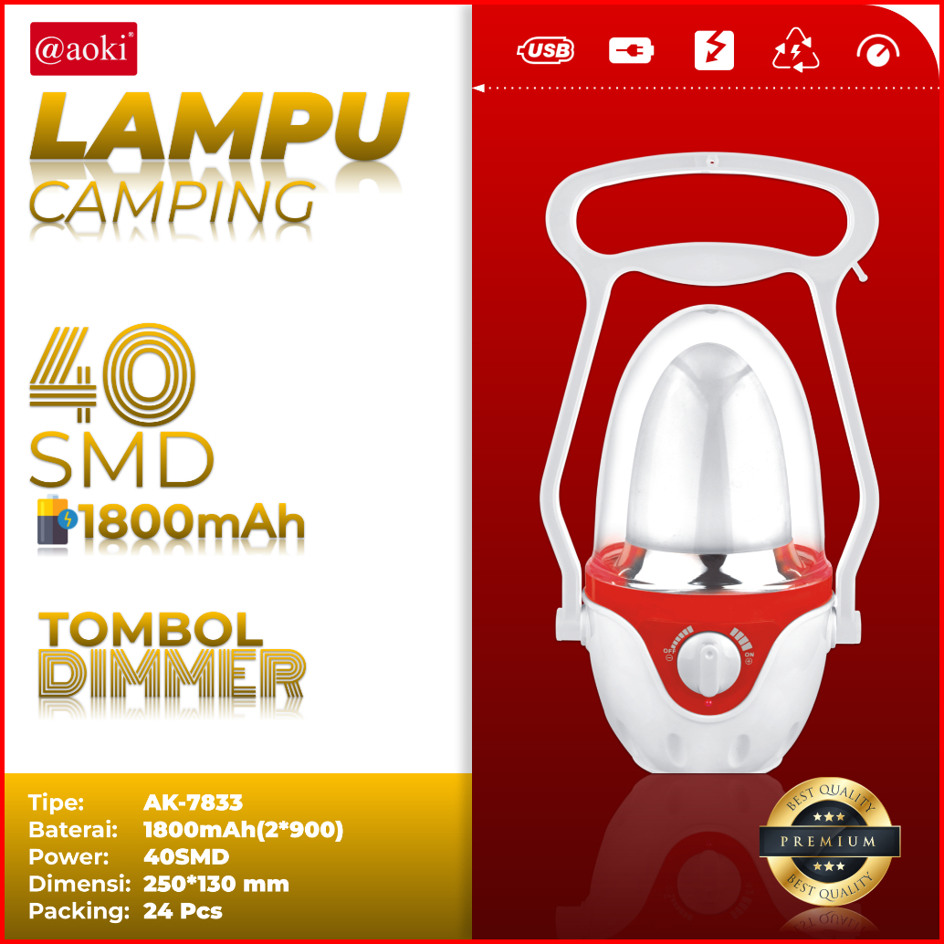 Aoki Lampu Camping Darurat Emergency Led 40smd Knob Dimmer Tahan Hingga 10jam