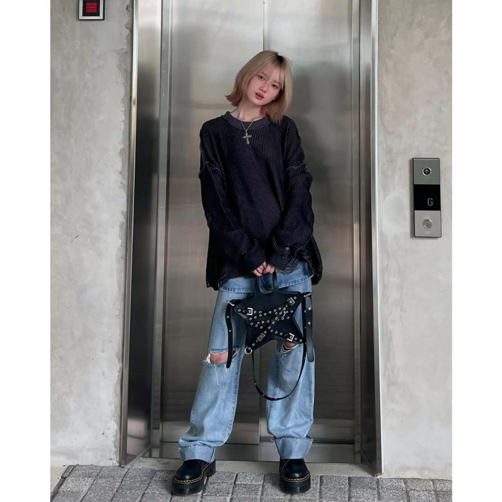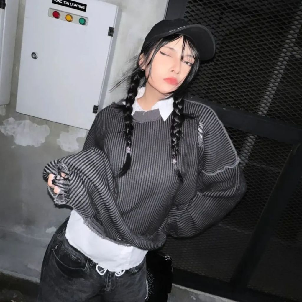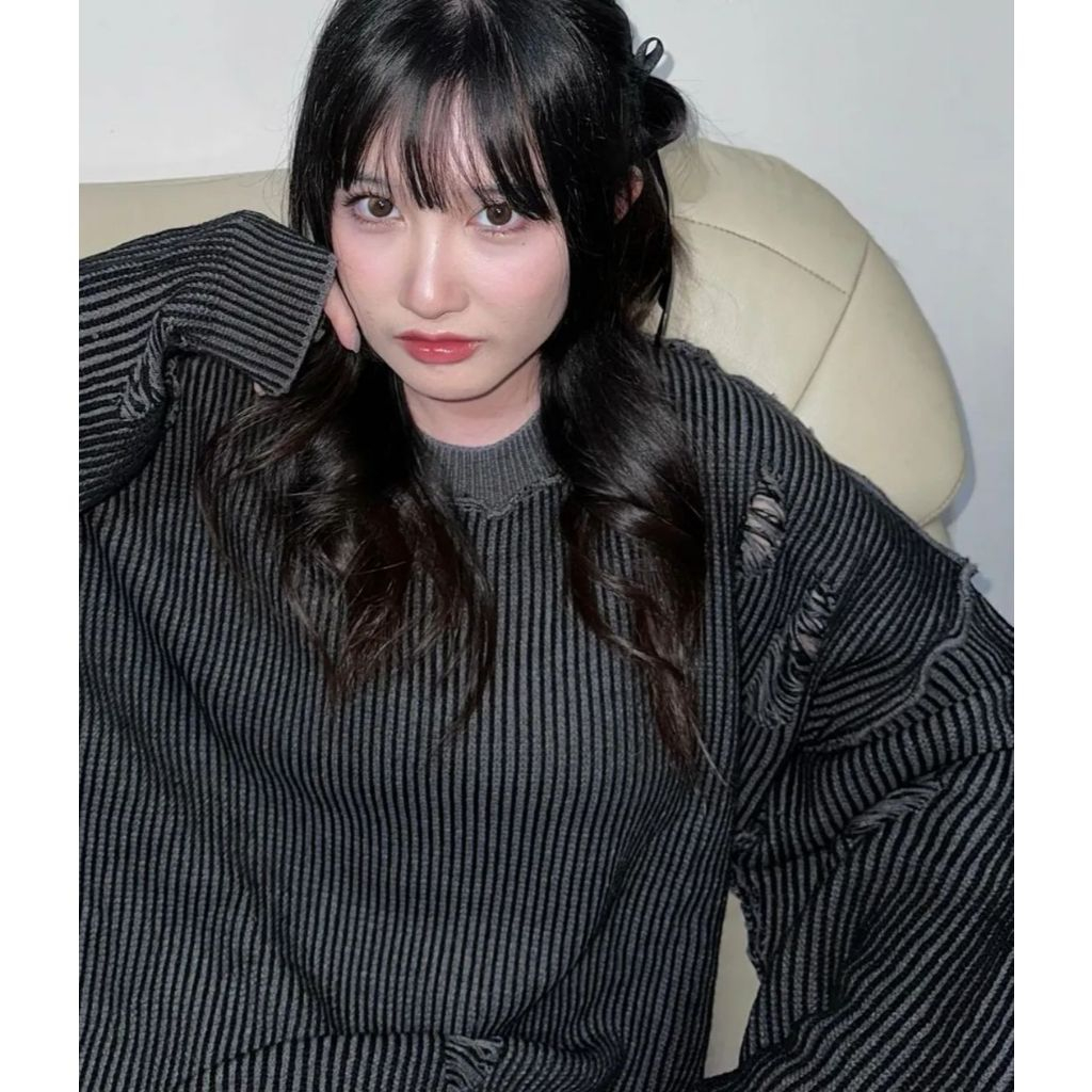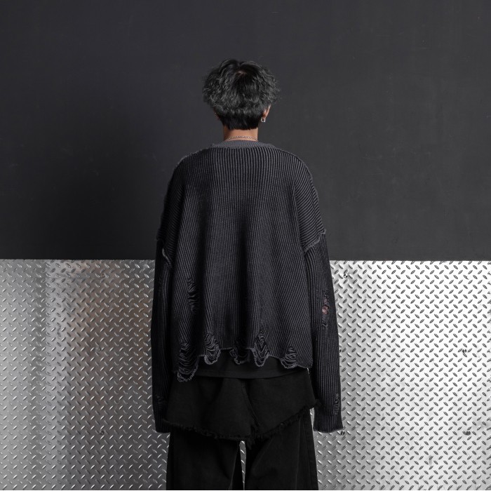 HIERARCHY STUDIOS Chroma - Distressed Dark Grey Flux Oversized Knit Sweater