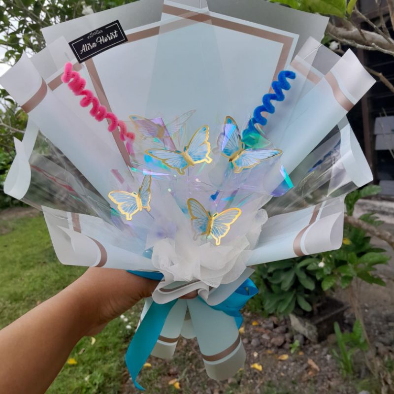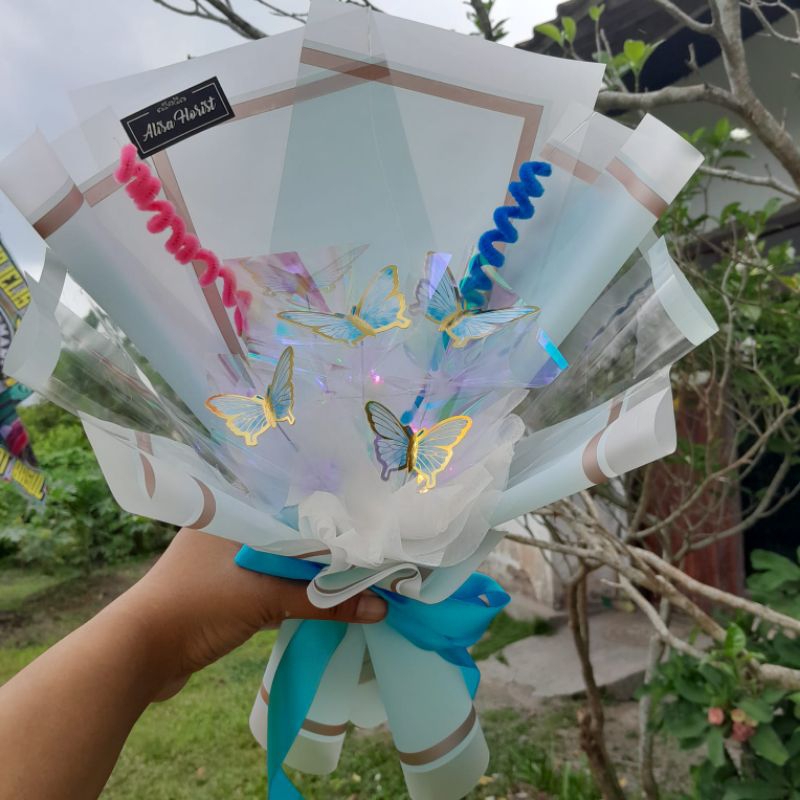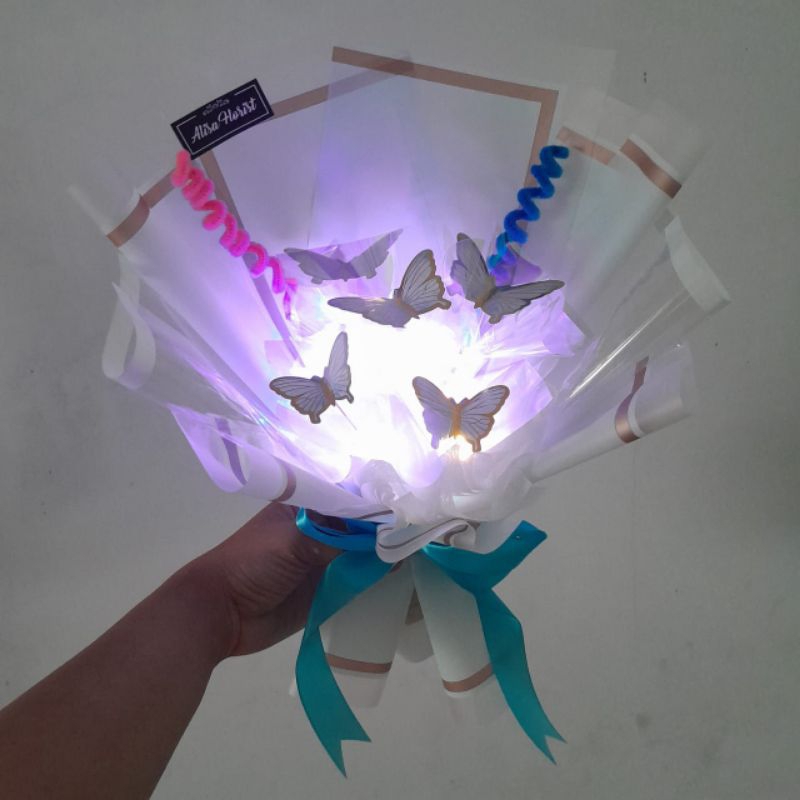 Buket Mini Kupu+LED Warna Pelangi 30cm