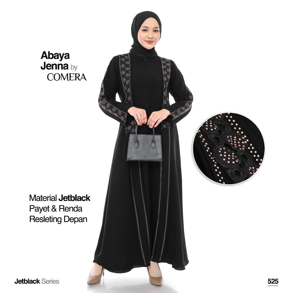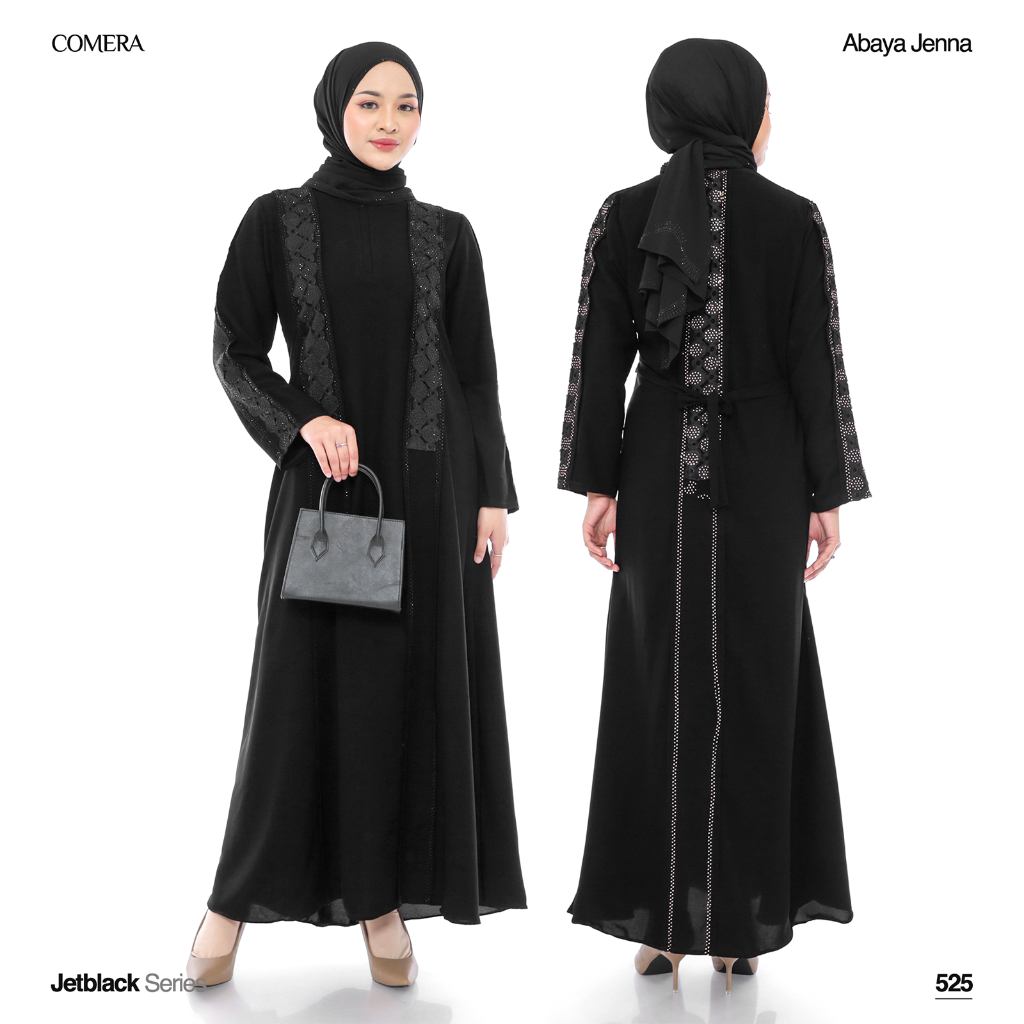[Mall]Comera - Abaya Jenna Gamis Hitam Turkey Jetblack Renda Payet Dress Lebaran Pesta Kajian Umroh 525