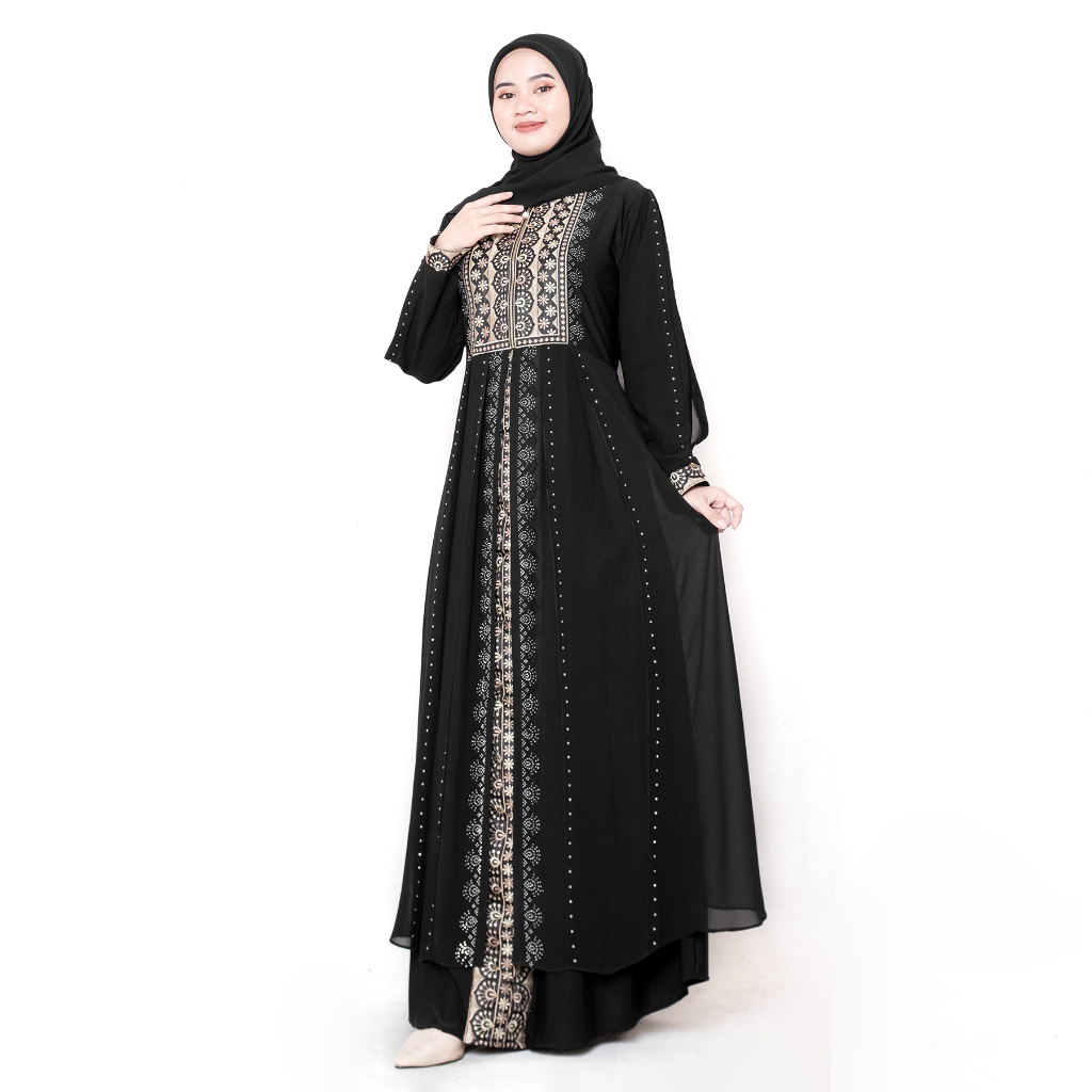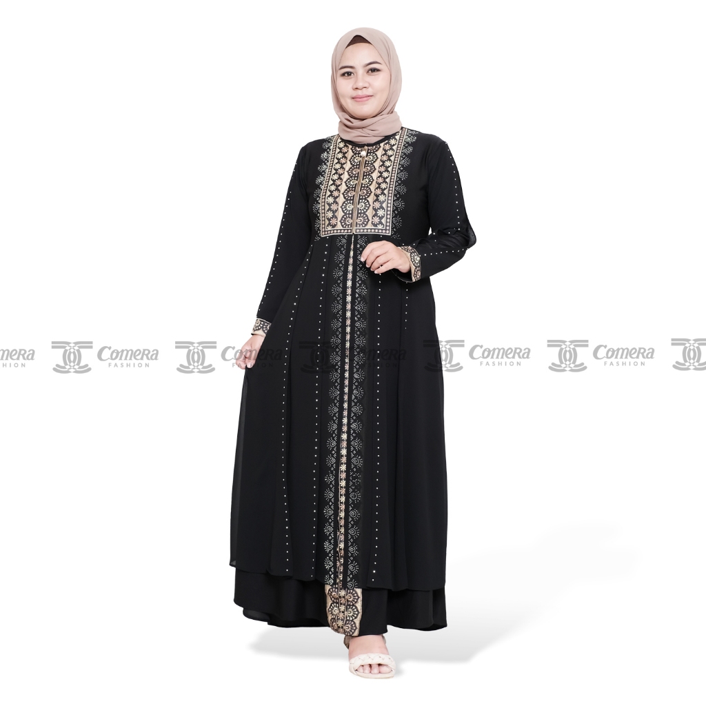 [Mall]Comera - Abaya Hitam Turkey Bordir Dan Payet Jersey Mix Cerutty Buka Pintu Gamis Muslimah Wanita 387