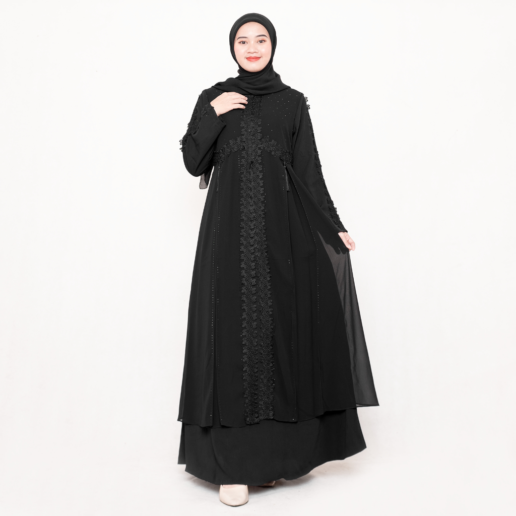 [Mall]Comera - Gamis Anak Perempuan Umur 7 - 14 Tahun Wolpeach Kombinasi Cerutty Renda Dan Payet Hitam 407