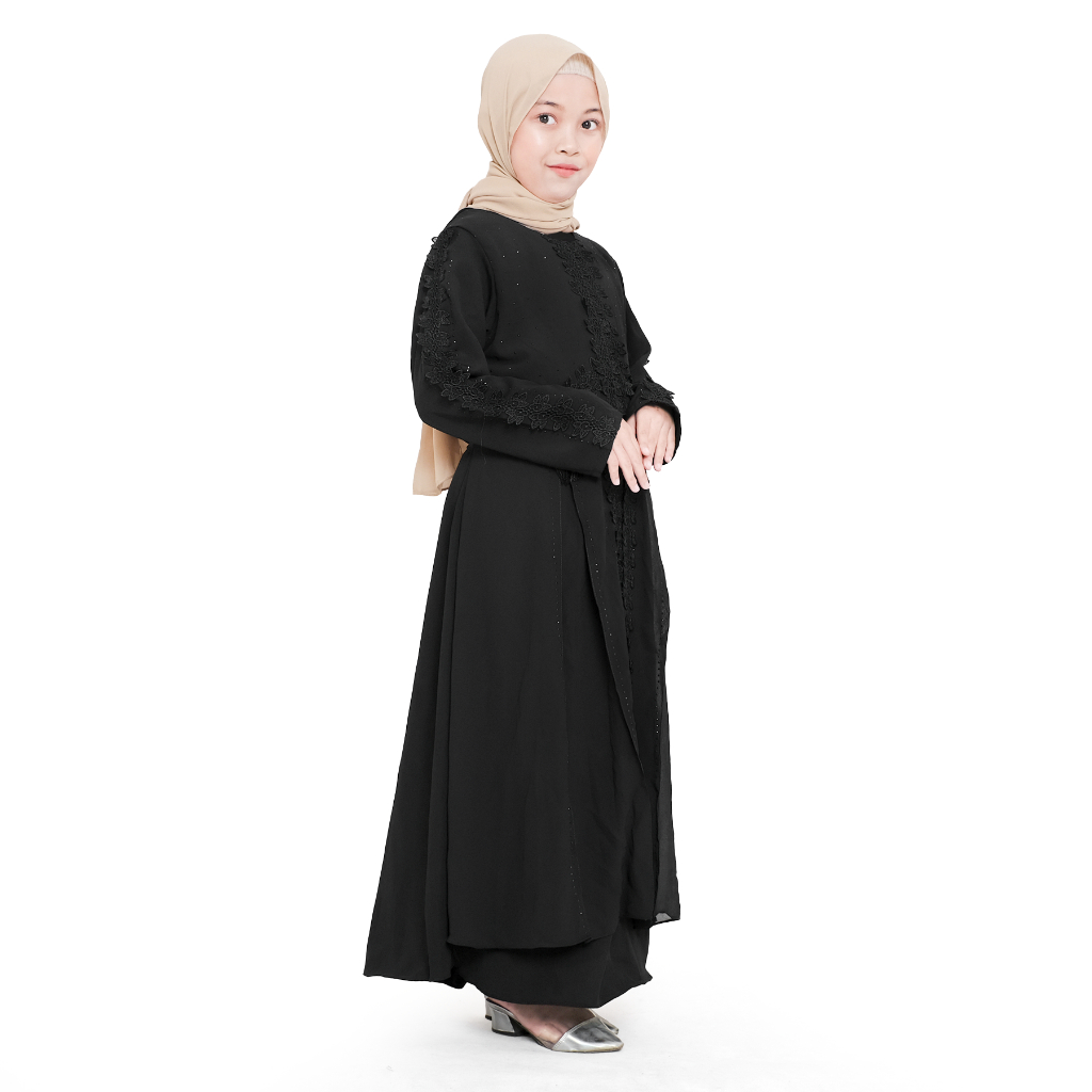 [Mall]Comera - Gamis Anak Perempuan Umur 7 - 14 Tahun Wolpeach Kombinasi Cerutty Renda Dan Payet Hitam 407