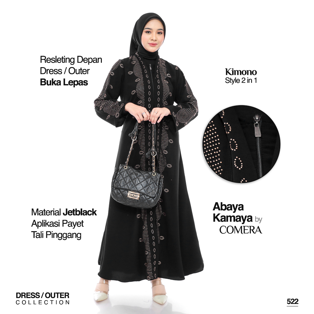 [Mall]Comera - Abaya Kamaya Gamis Turkey Hitam Jetblack Dress Outer Zipper Lebaran Pesta Kajian Umroh 522