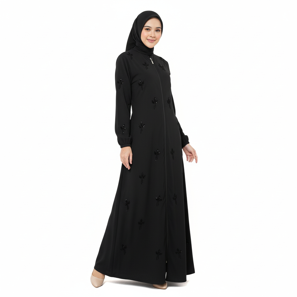 [Mall]Comera - Abaya Turkey Hitam Jetblack Payet Simple Elegan Dress Gamis Outer Saudi Lebaran Jihan 530