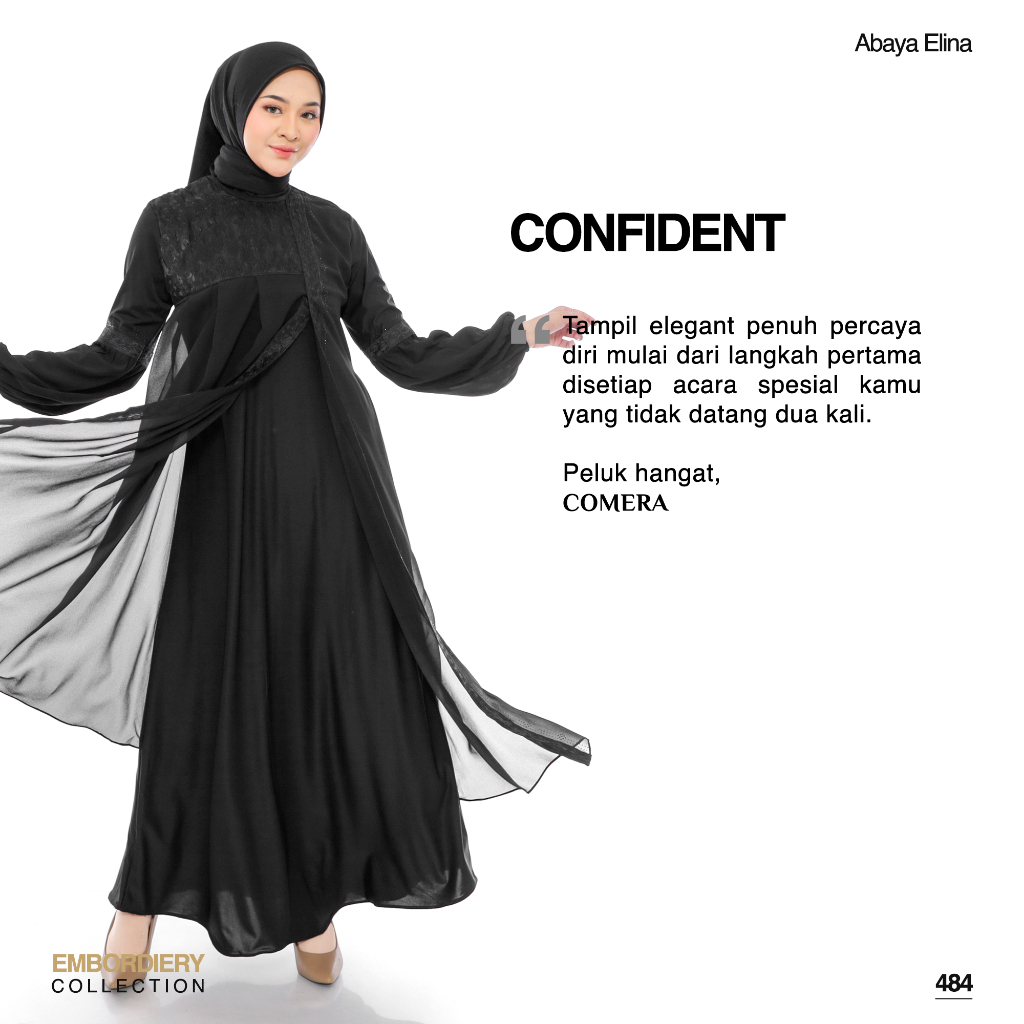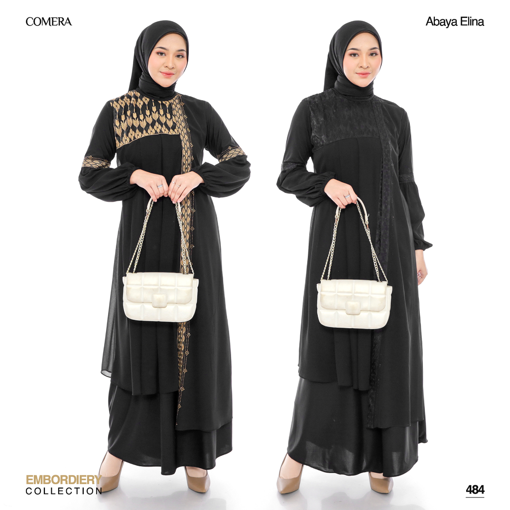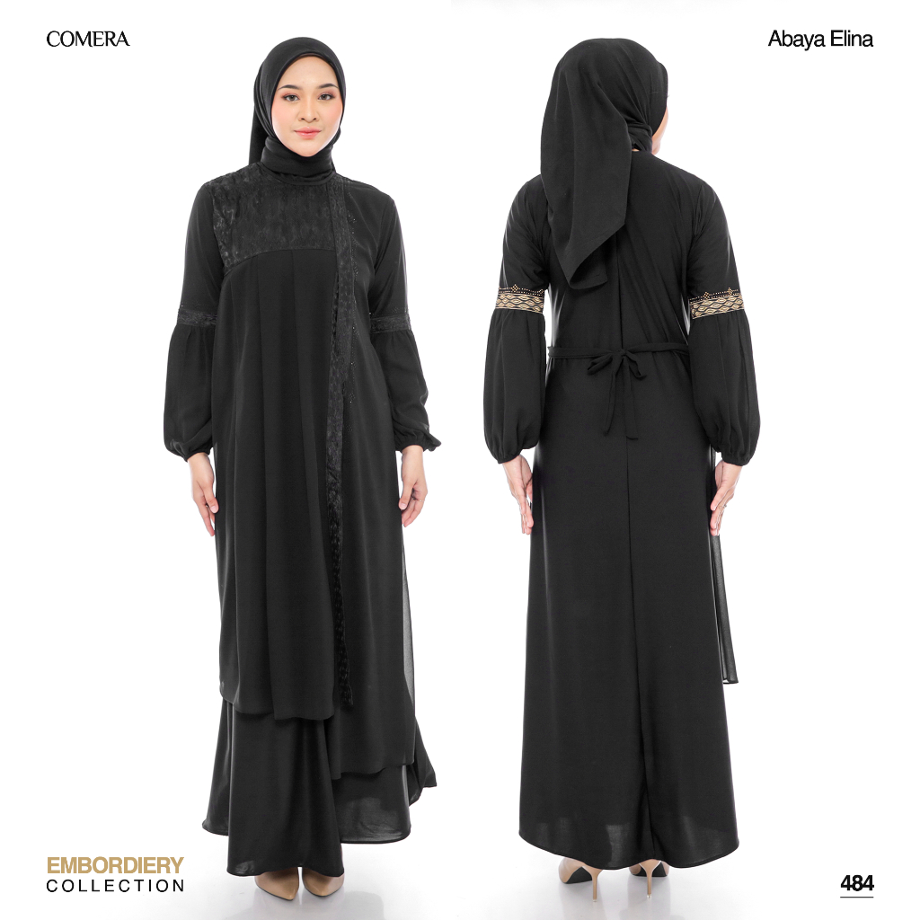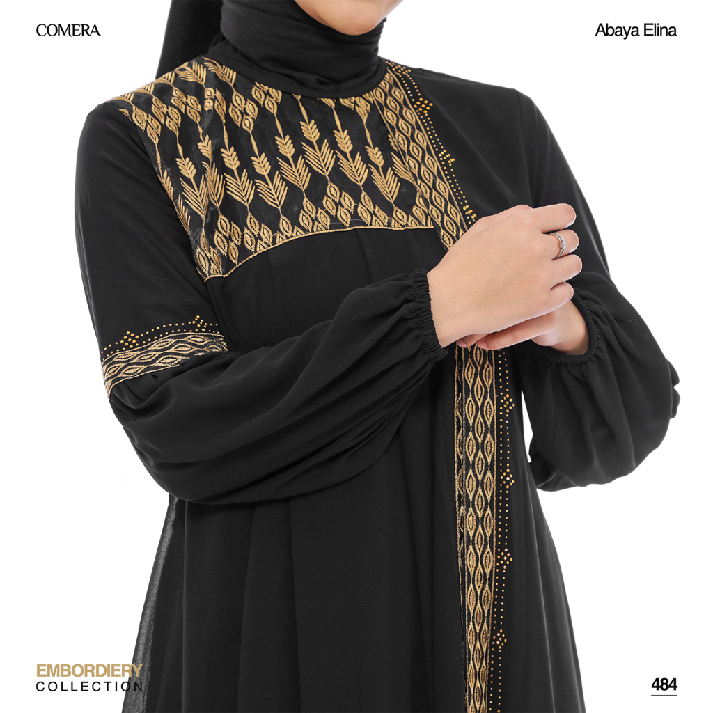 [Mall]Comera - Abaya Elina Gamis Hitam Turkey Jersey Ceruty Bordir Dress Pesta Lebaran Kajian Umroh 484