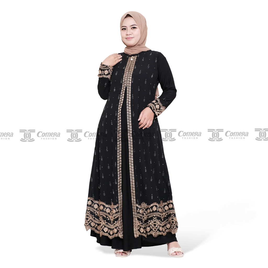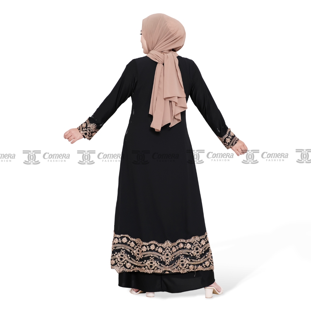 [Mall]Comera - Abaya Dilara Gamis Hitam Turkey Jersey Ceruty Bordir Payet Keliling Dress Pesta Lebaran 310