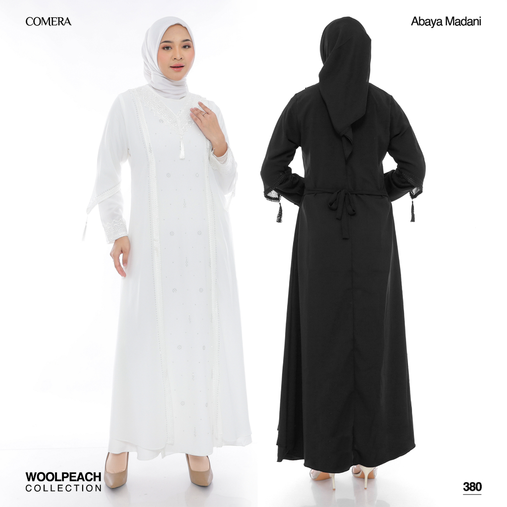 [Mall]Comera - Gamis Abaya Putih Turkey Brokat Wolfis Renda Payet Elegan Dress Lebaran Kajian Umroh 380