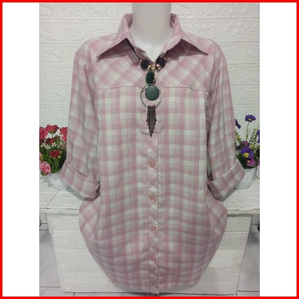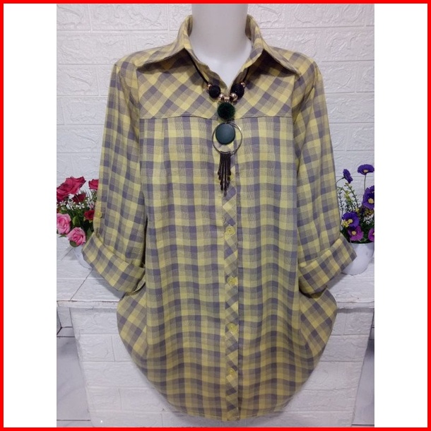 Atasan Wanita Kemeja Cewek Motif Kotak Kotak Ak070k