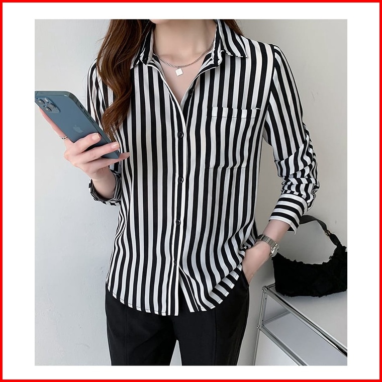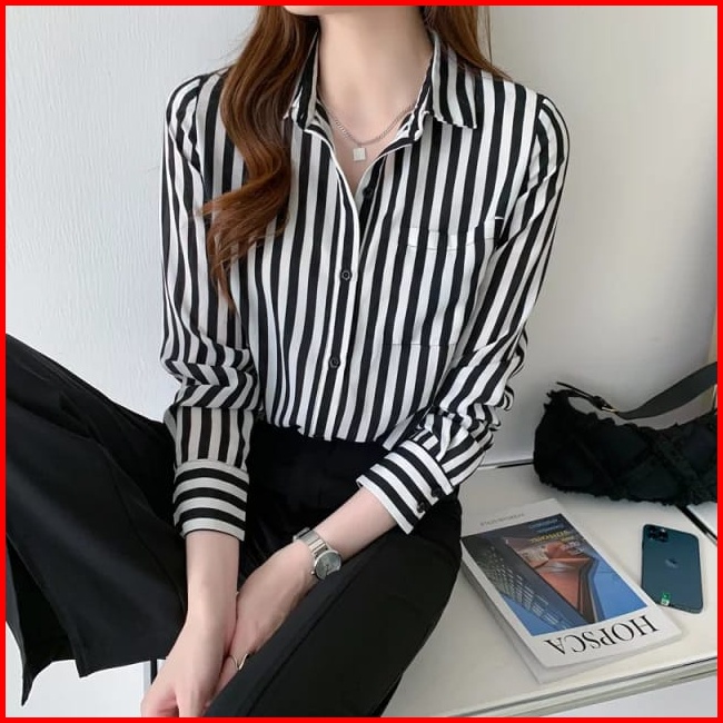 Calissa Fashion Kemeja Atasan Wanita Salur Model Lily Lengan Panjang