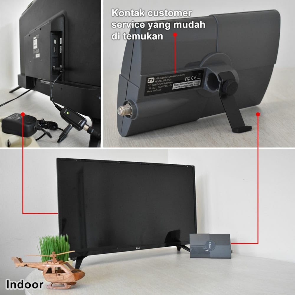 Antena TV Digital Analog PX DA-5120 Kabel 12M Booster Indoor-Outdoor