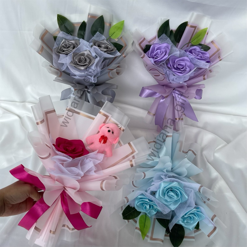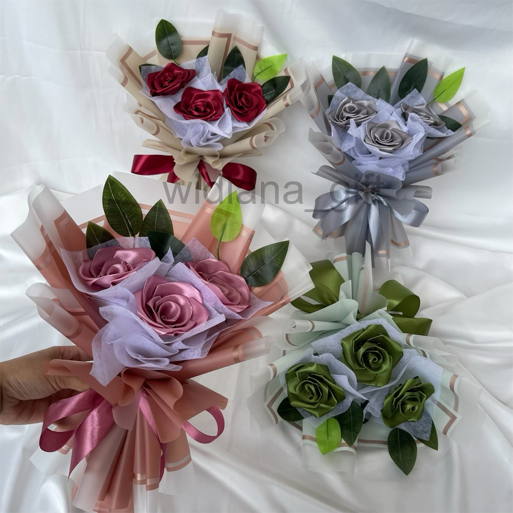 Buket Bunga 3 Mawar Satin / Buket Boneka / Buket Wisuda