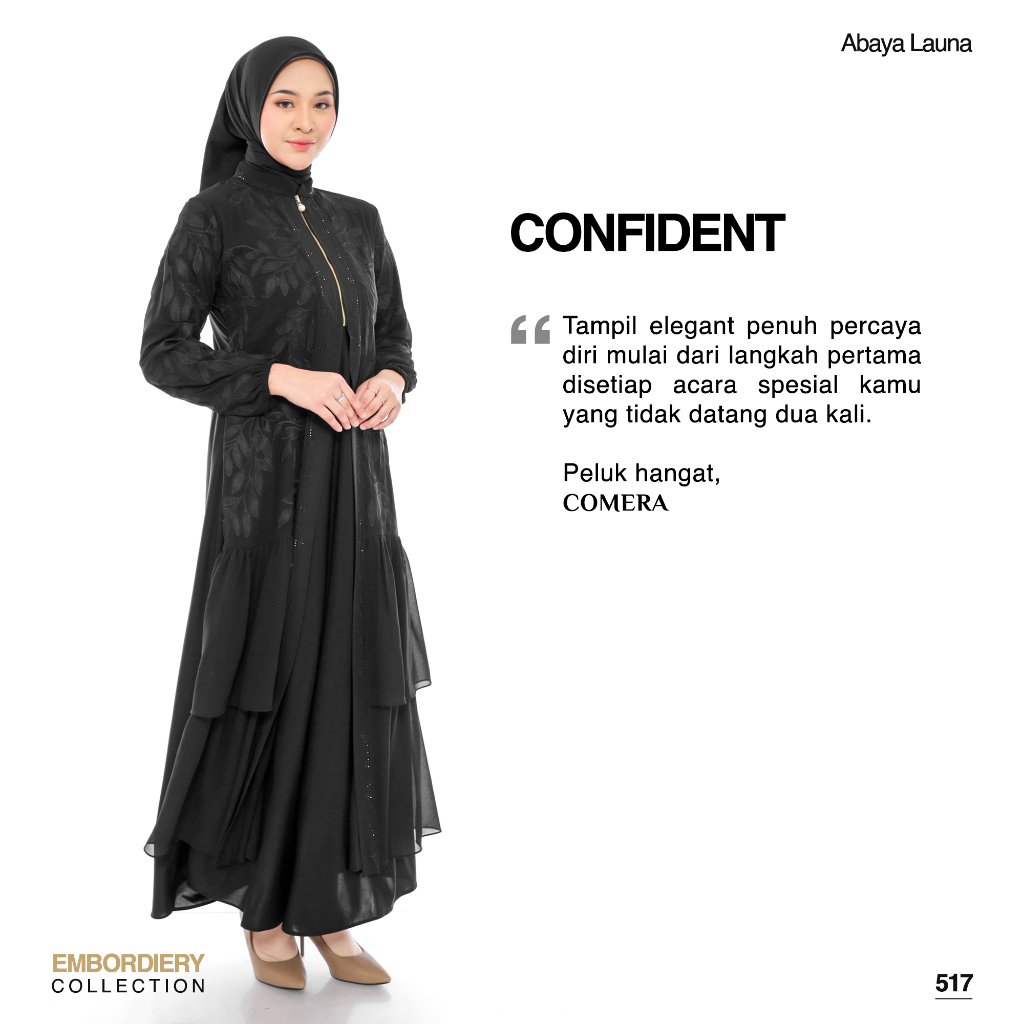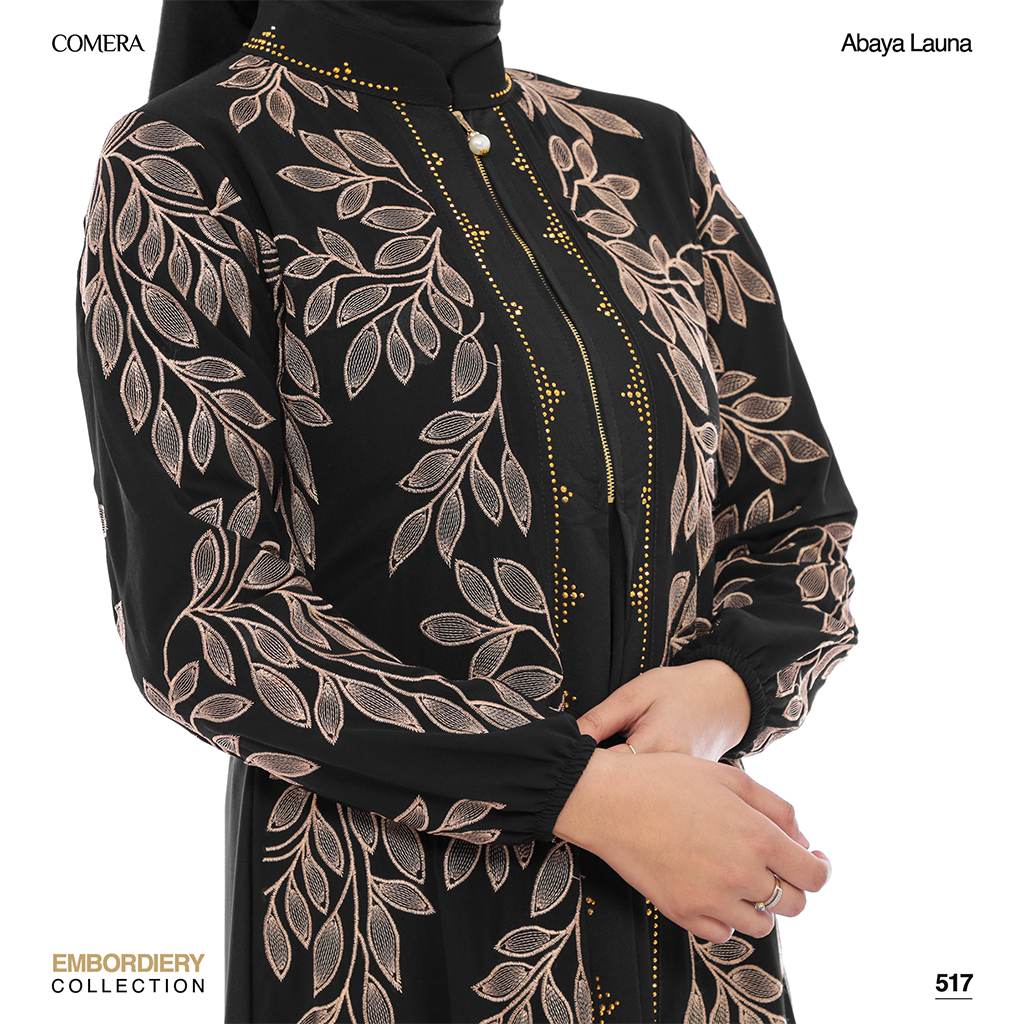 [Mall]Comera - Abaya Launa Gamis Turkey Jersey Ceruty Bordir Hitam Dress Lebaran Pesta Kajian Umroh 517