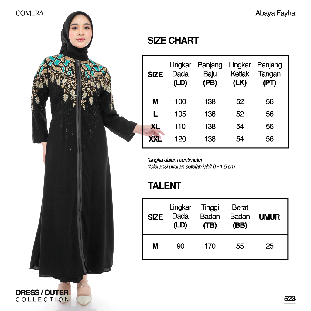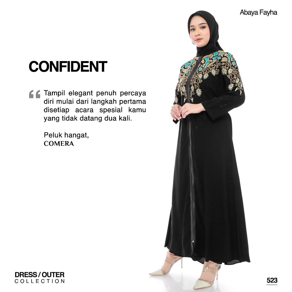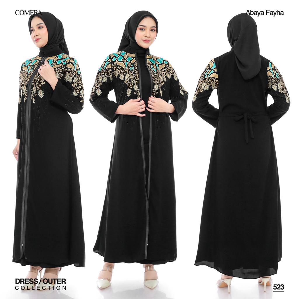 [Mall]Comera - Abaya Fayha Gamis Turkey Hitam Jetblack Bordir Dress Outer Lebaran Pesta Kajian Umroh 523