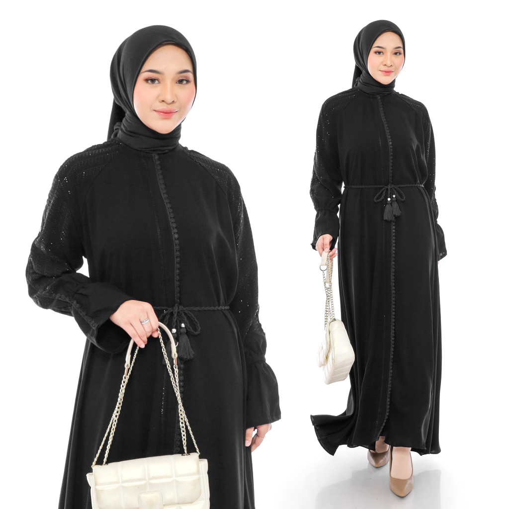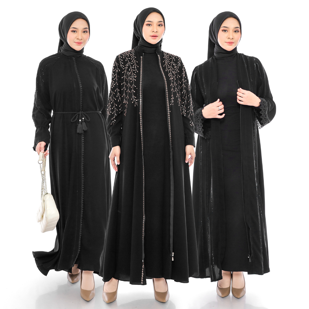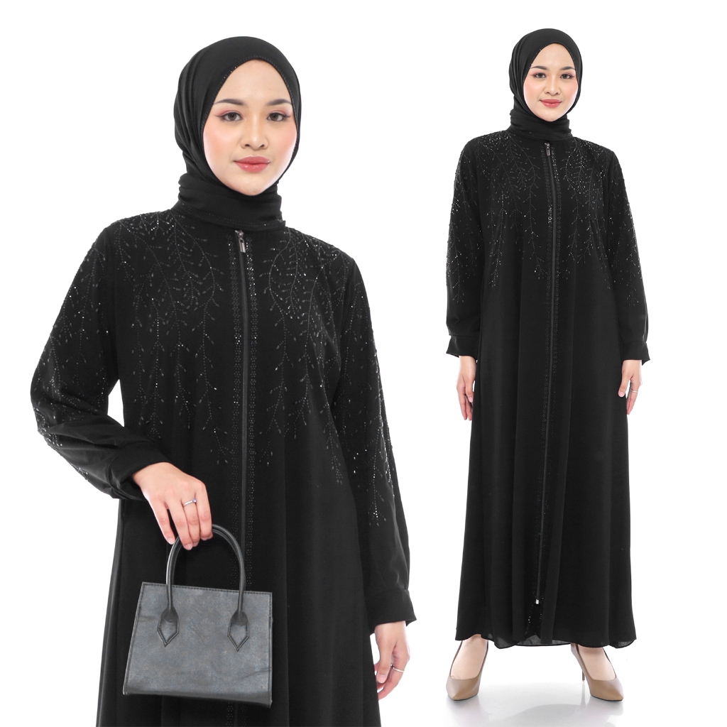[Mall]Comera - Dress Abaya Outer Zipper Jubah Saudi Gamis Hitam Turkey Elegan Lebaran Pengajian Umroh