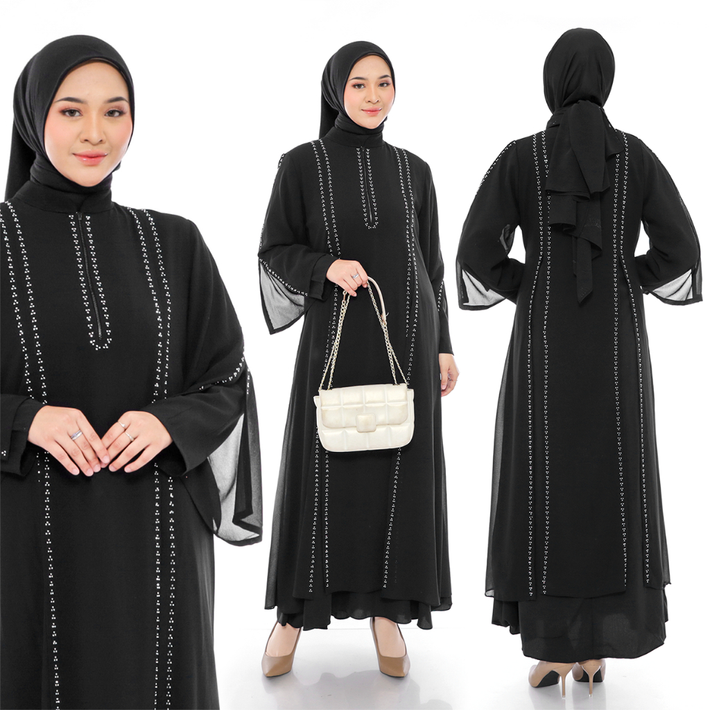 [Mall]Comera - Abaya Dinara Gamis Turkey Hitam Jetblack Ceruty Dress Lebaran Pesta Kajian Umroh 521