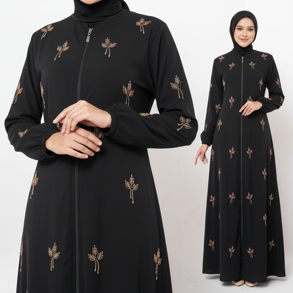 [Mall]Comera - Abaya Turkey Hitam Jetblack Payet Simple Elegan Dress Gamis Outer Saudi Lebaran Jihan 530