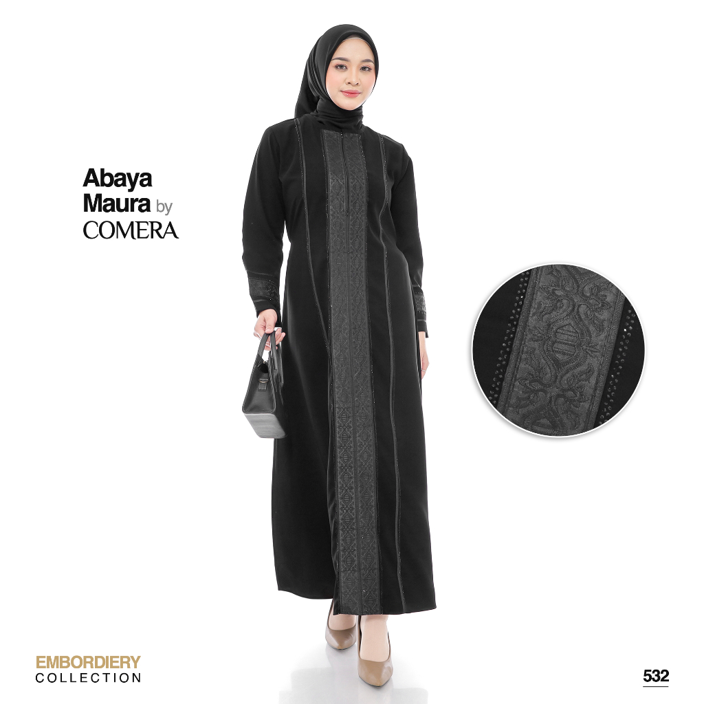 [Mall]Comera - Abaya Maura Gamis Hitam Turkey Jetblack Bordir Payet Dress Lebaran Pesta Kajian Umroh 532