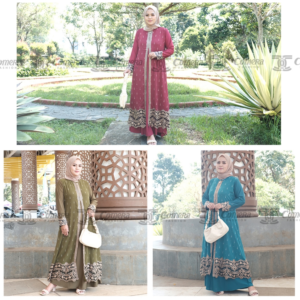 [Mall]Comera - Abaya Dilara Gamis Hitam Turkey Jersey Ceruty Bordir Payet Keliling Dress Pesta Lebaran 310