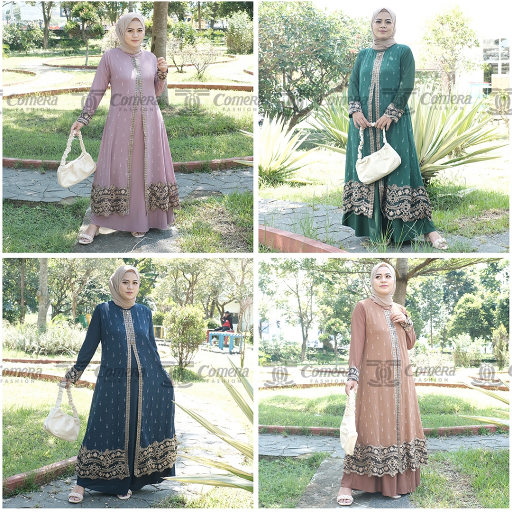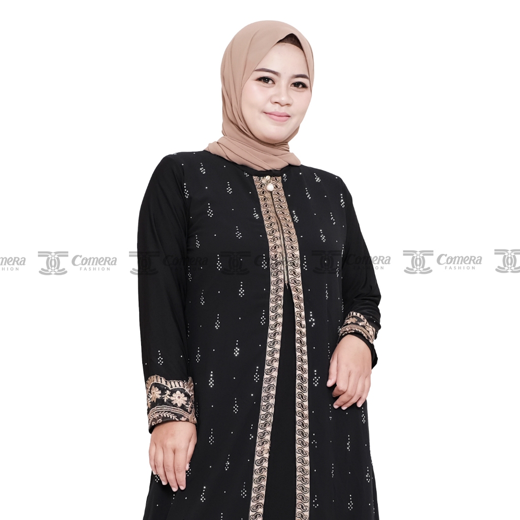 [Mall]Comera - Abaya Dilara Gamis Hitam Turkey Jersey Ceruty Bordir Payet Keliling Dress Pesta Lebaran 310