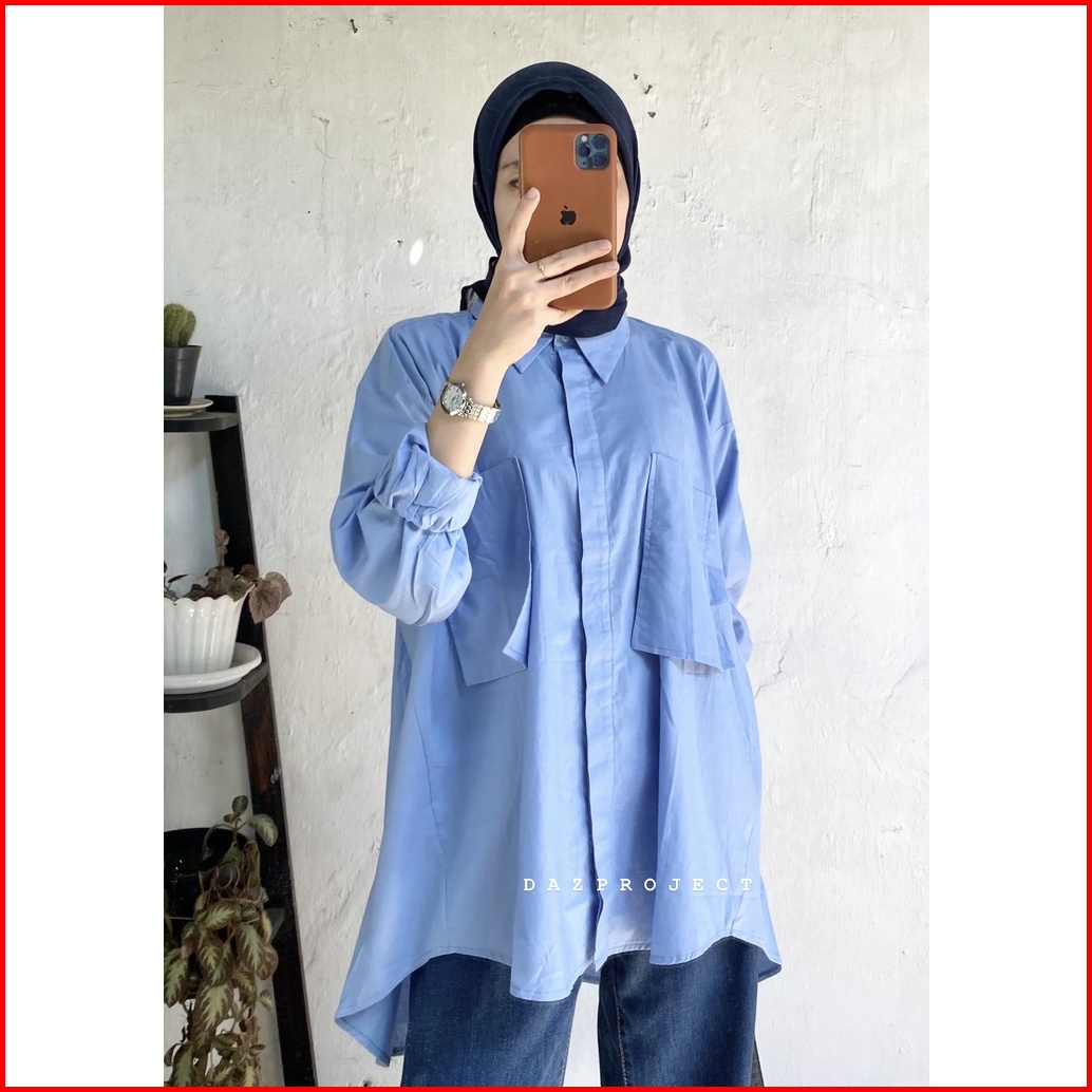 Pocket Poplin Shirt Oversized Poplin Shirt Yura Basic Kemeja Atasan Bigsize Kemeja Poplin Warna Fuschia Ara Pouch Nura B