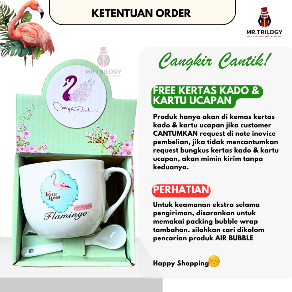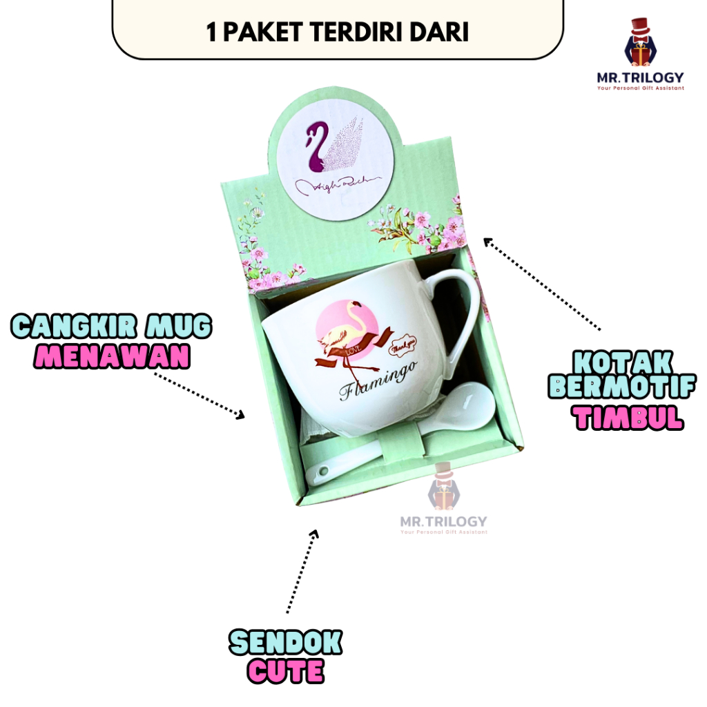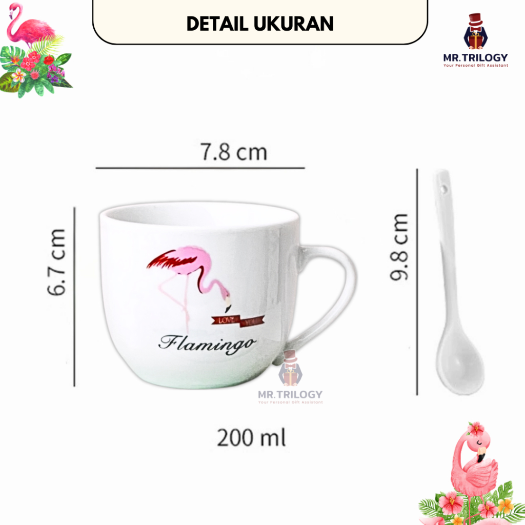 Hampers Gelas Kopi Keramik Free Sendok/Cangkir Kopi/ Mug Souvenir Hampers Premium FLAMINGO
