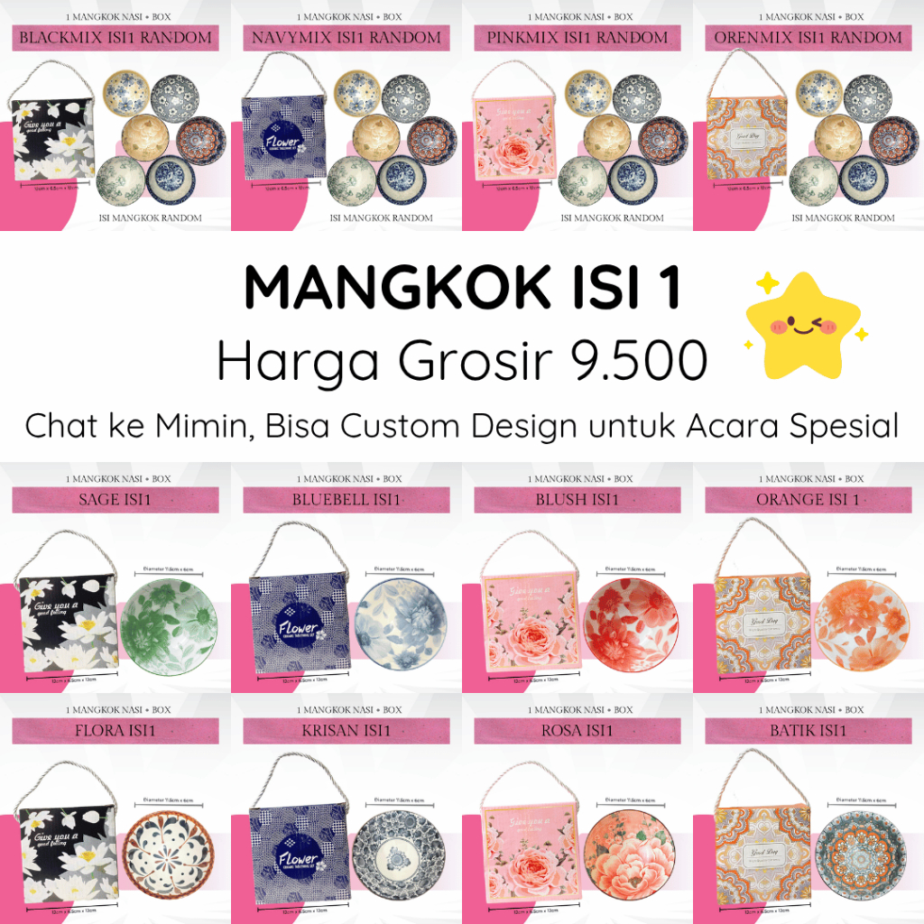 BlackMix isi1 RANDOM, KremMix isi1 RANDOM, NavyMix isi1 RANDOM, OrenMix isi1 RANDOM, PinkMix isi1 RANDOM, Cherry isi1, Lilac isi1, Batik1, Bluebell1, Blush1, Bunga1, Flora1, Krisan1, Orange1, Rosa1, Sage1, Bleu2, Bohemian2, Coklat2, Dahlia2, Flower2, KelopakBiru2, KelopakIjo2, KelopakMerah2, KelopakOren2, Mandala2, Regal2, Rusa2, RoseKuning2, RosePink2, Sunny2, Ungu2, Panda2, Daisy4, Gandum4, Green4, Maori4, Rainbow4, Rosalyn4, Waffle4, Yellow4, PandaHitam4, Biscuit6, Nila6, Peony6, Rosette6, Vintage6