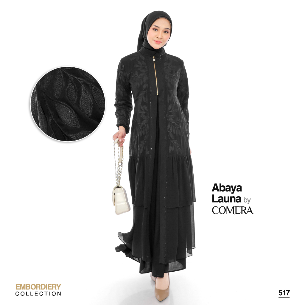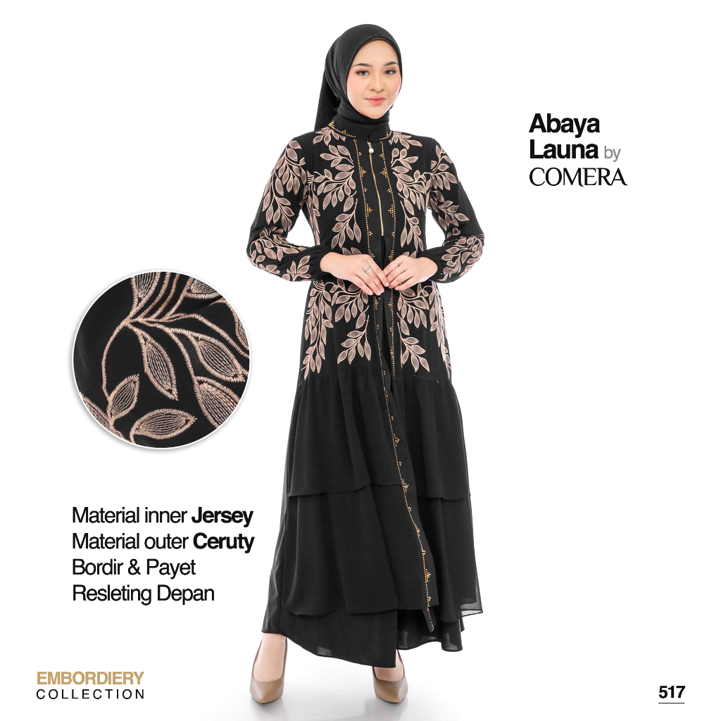 [Mall]Comera - Abaya Launa Gamis Turkey Jersey Ceruty Bordir Hitam Dress Lebaran Pesta Kajian Umroh 517