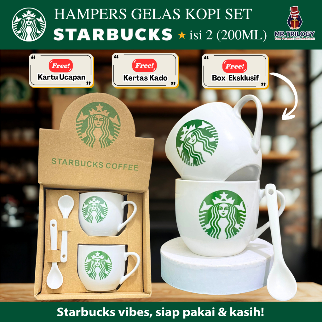 Mug Gelas Kopi Keramik Hampers Souvenir Cangkir Starbucks Dengan Sendok Coffee Hot & Cool 200ML