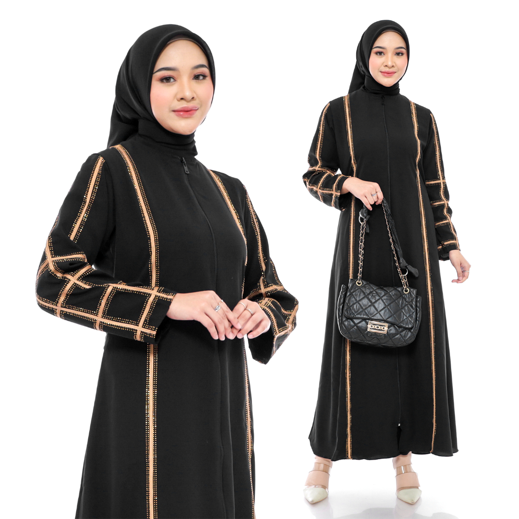 [Mall]Comera - Dress Abaya Outer Zipper Jubah Saudi Gamis Hitam Turkey Elegan Lebaran Pengajian Umroh