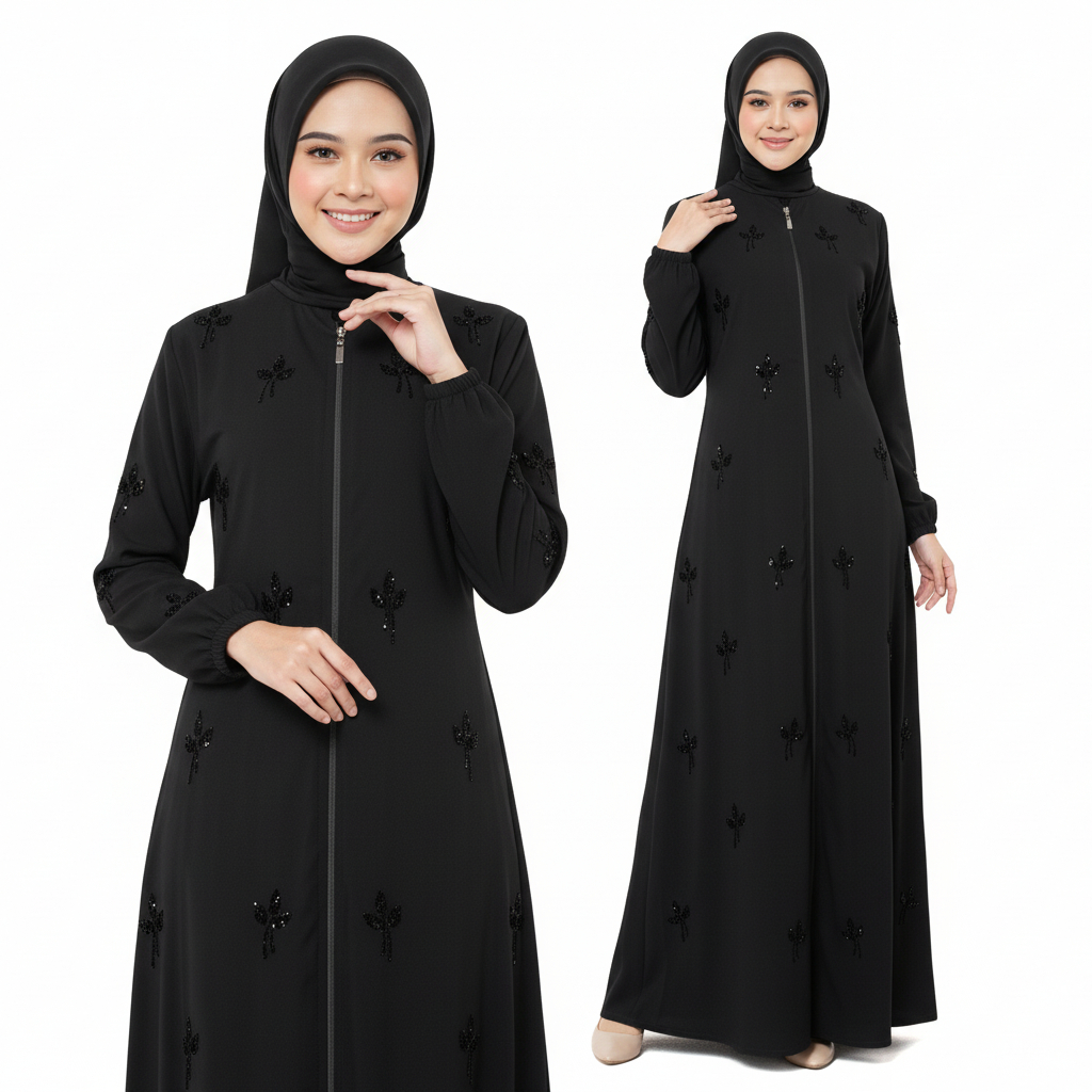 [Mall]Comera - Abaya Turkey Hitam Jetblack Payet Simple Elegan Dress Gamis Outer Saudi Lebaran Jihan 530