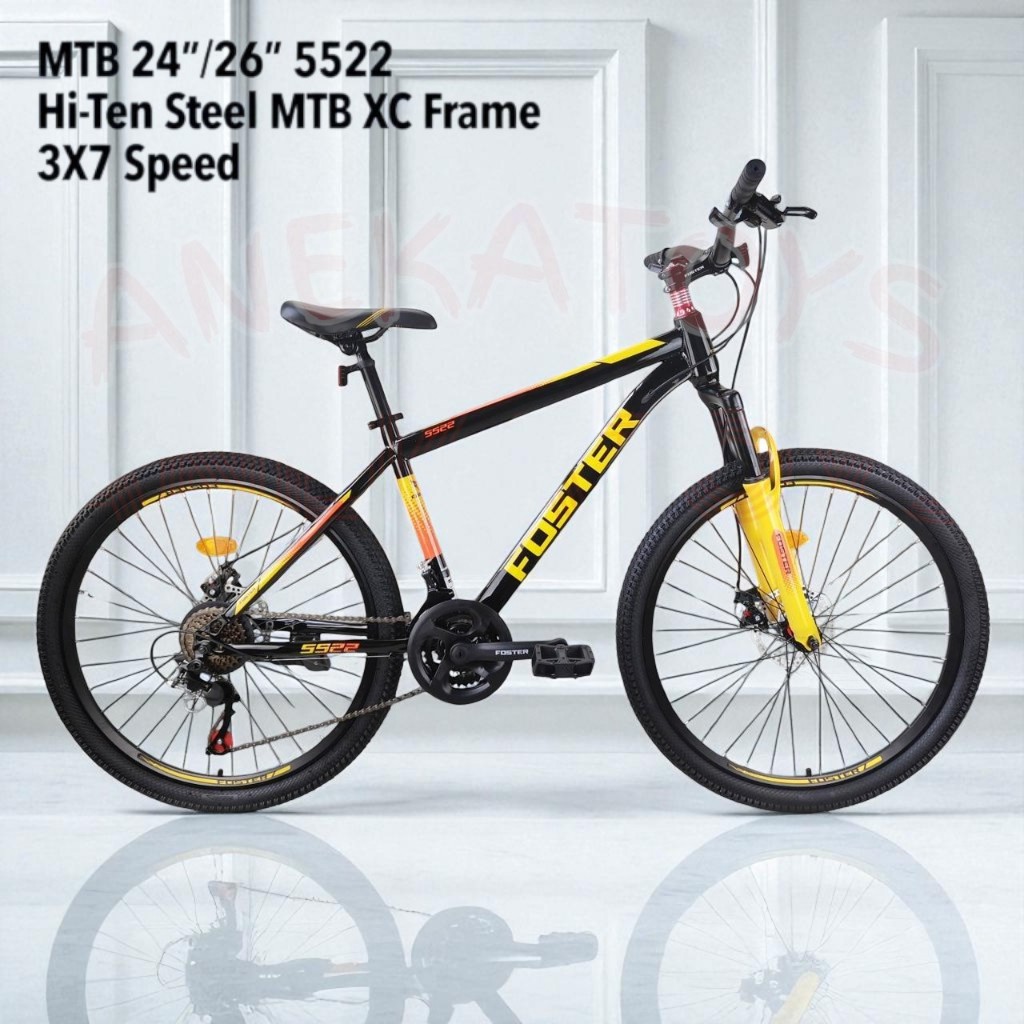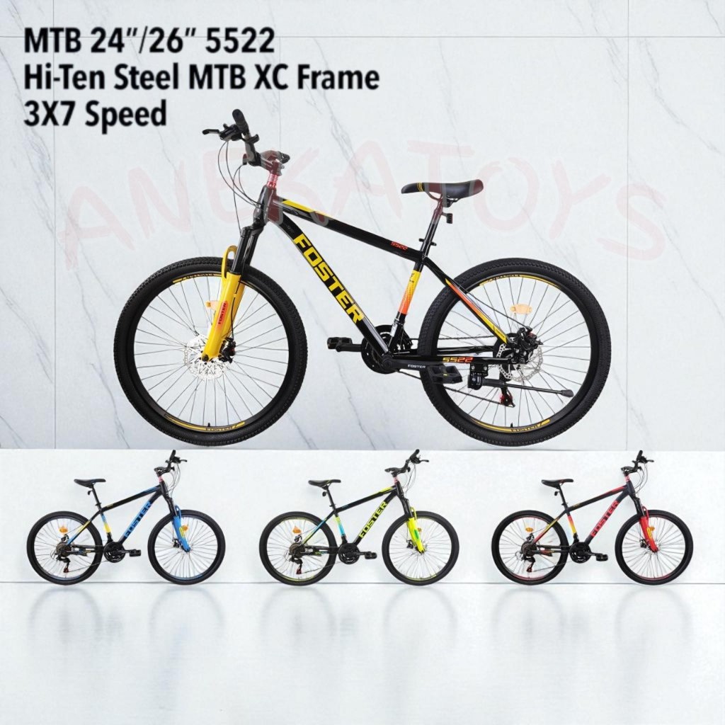 (BONUS POMPA) Sepeda Gunung Foster 5522 MTB 20/24/26 Inch Hi Ten Steel XC Frame (3x7 Speed)