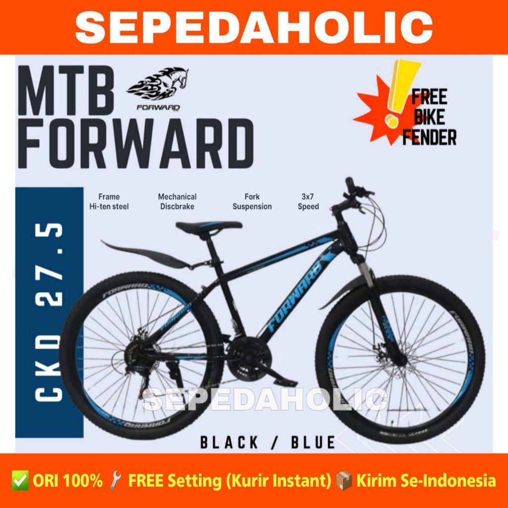 Sepeda Gunung MTB FORWARD CKD Spakbor Ukuran 27.5 Inch 21 Speed Rem Cakram Dewasa