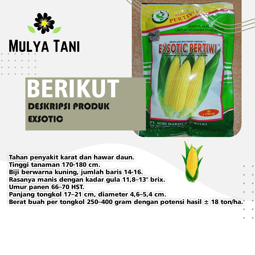 Benih Bibit Jagung Manis Exsotic Pertiwi 1750 Butir Biji Original Bibit Jagung Hibrida Bibit Eksotik