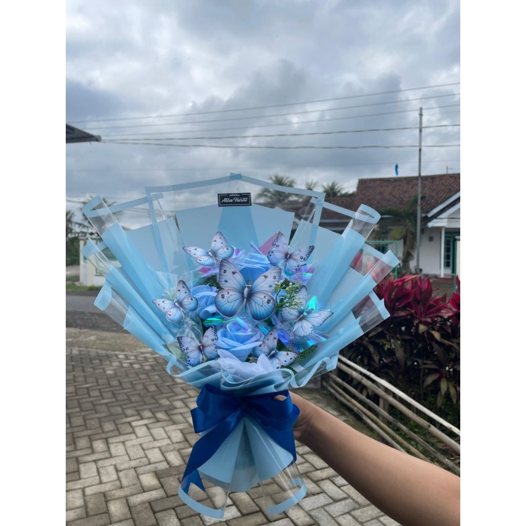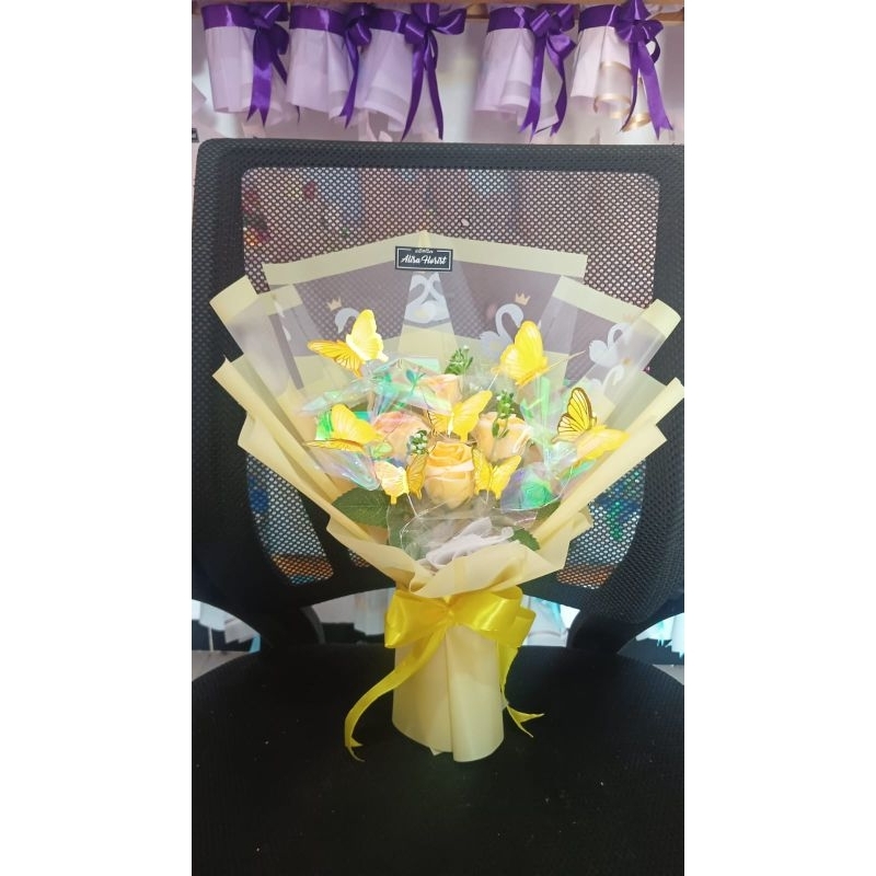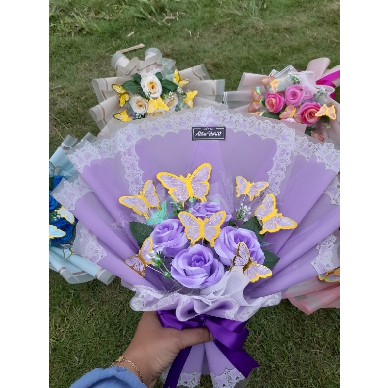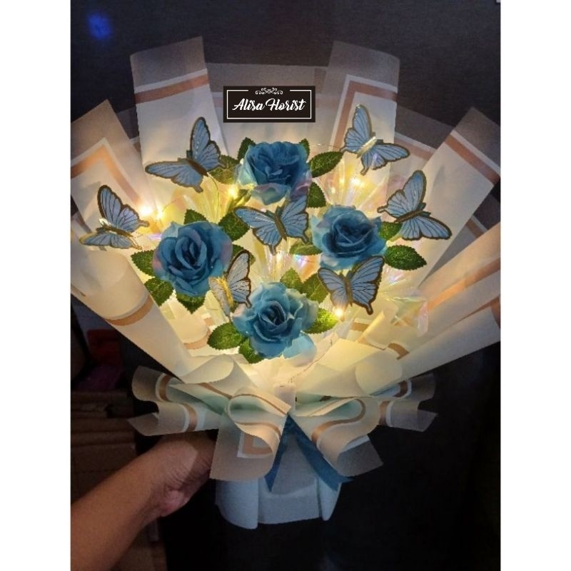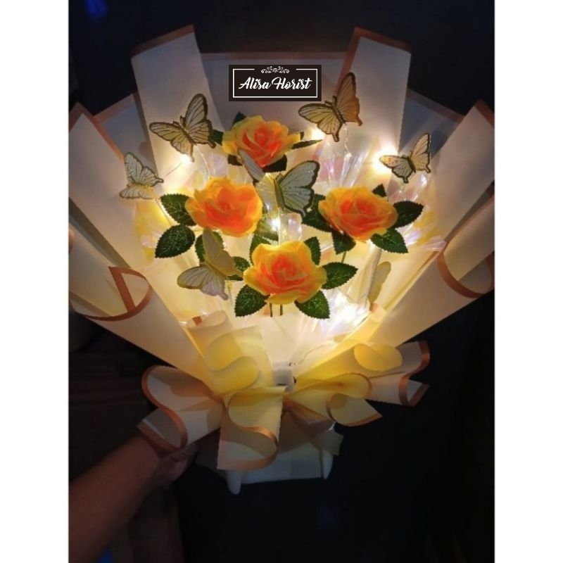 Produk baru buket kupu bunga artifisial +lampu led free kartu ucapan