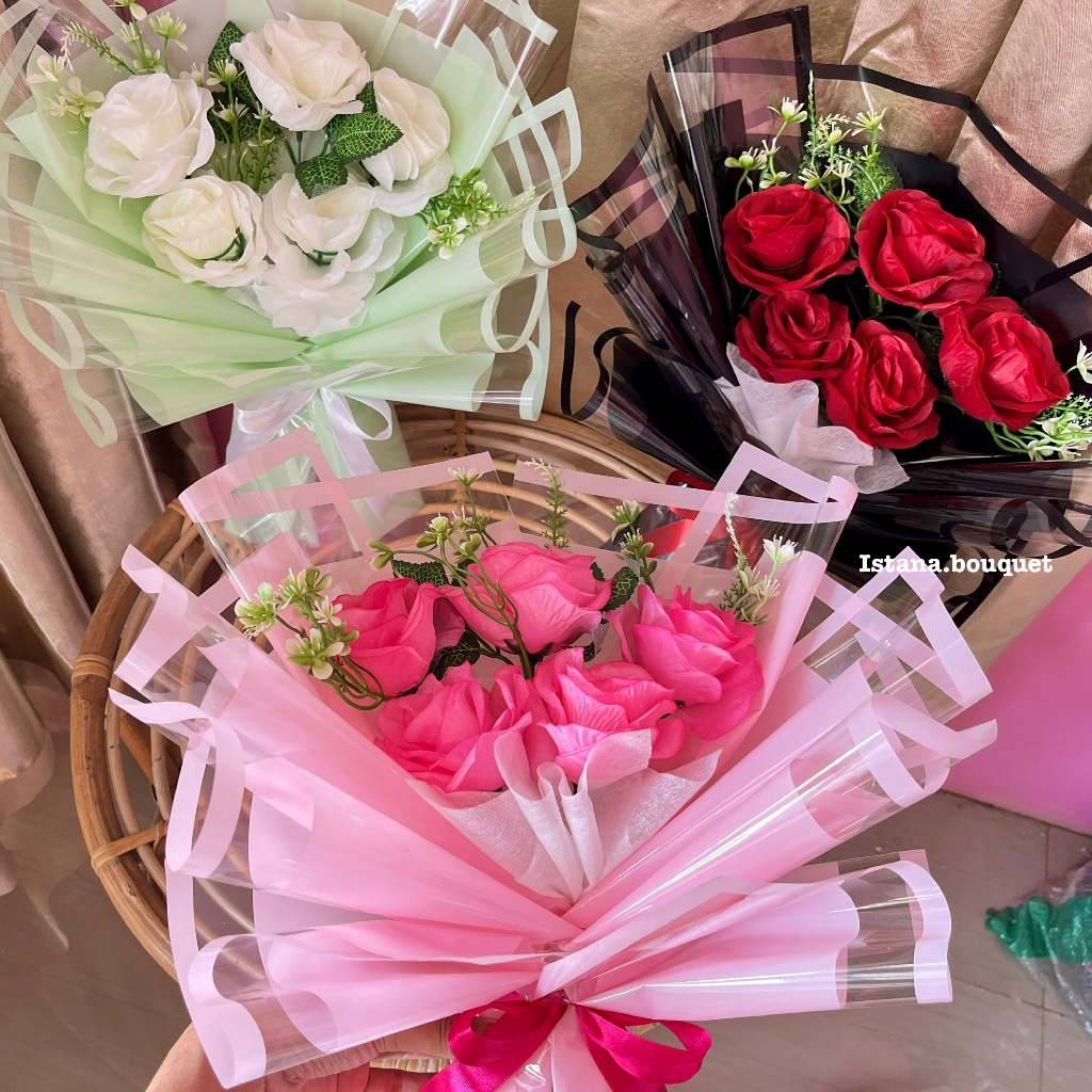 Buket Bunga 5 Mawar + Lampu LED esthetic Buket Wisuda Graduation Hadiah Ulang Tahun Bucket Flower Bunga Wisuda Cewek Co