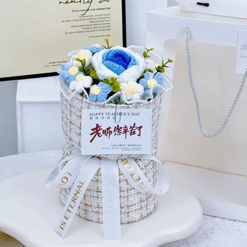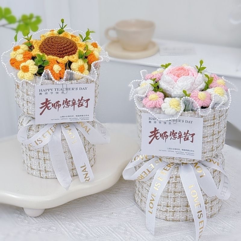 PONPON - Buket Bunga ROUND Rajut - Sunflower Bunga Matahari Mawar Cantik Premium READY STOCK