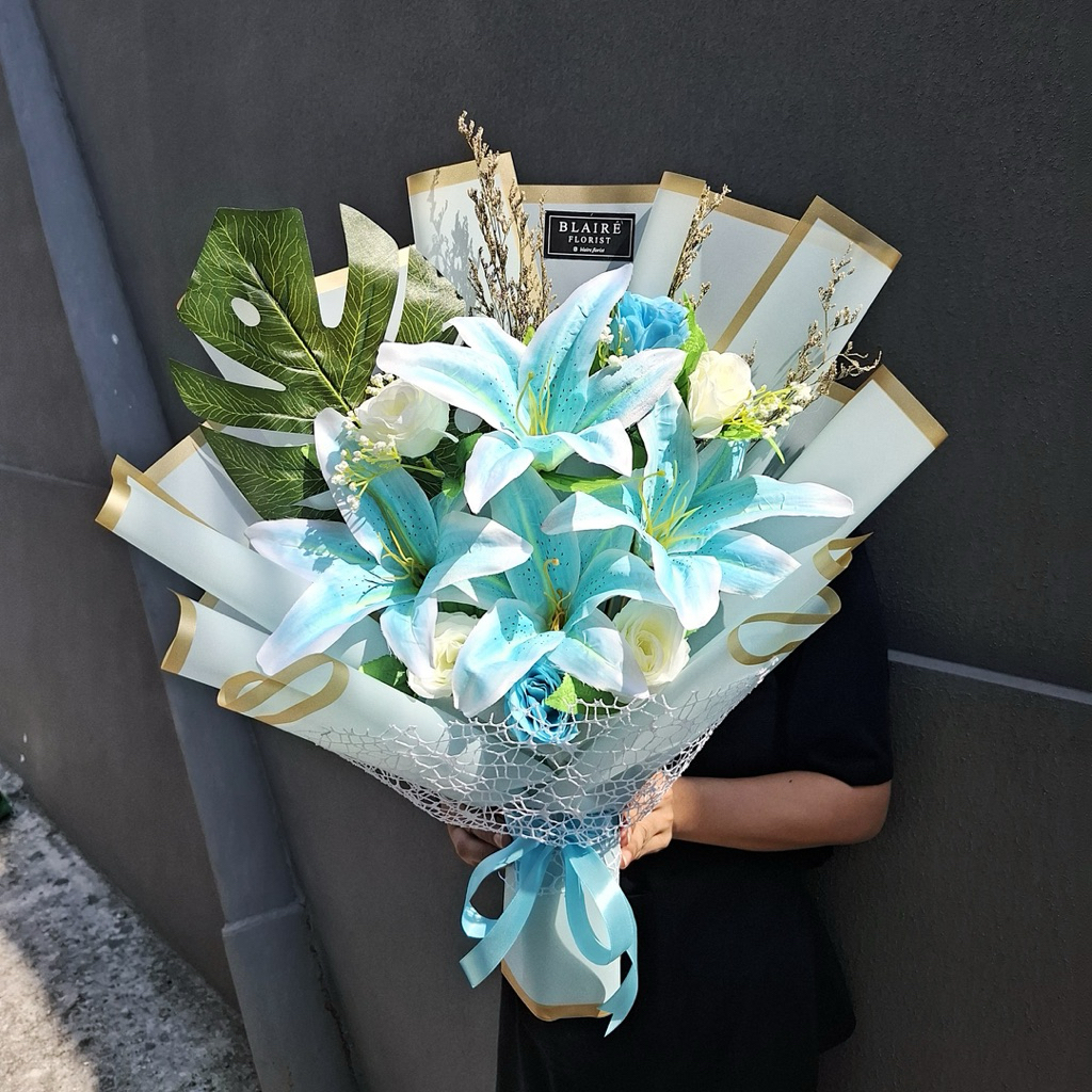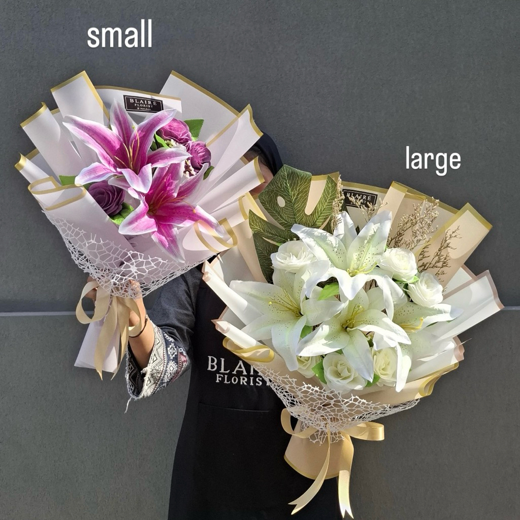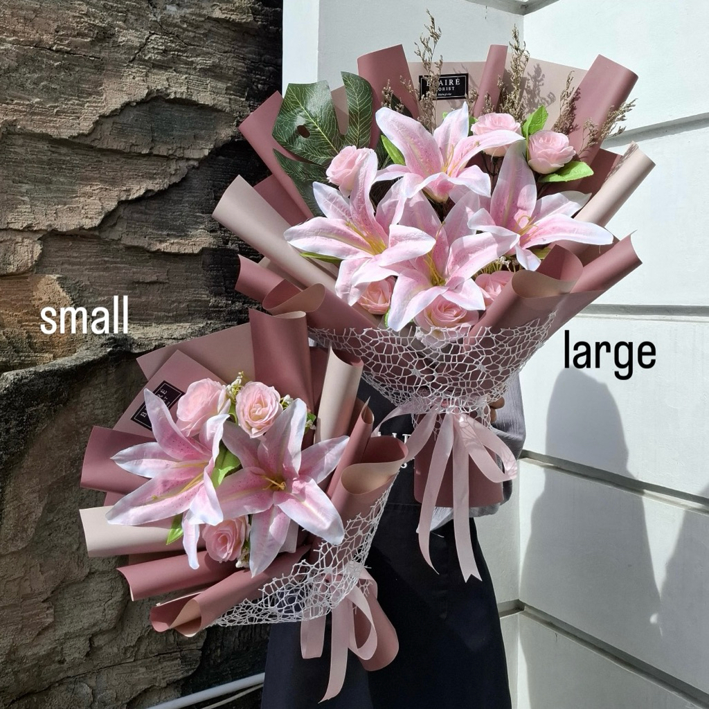 (NEW) BUKET LILY DAN MAWAR PALSU PREMIUM | LILY ROSE BOUQUET ARTIFICIAL | BUKET BUNGA PREMIUM BESAR | HADIAH KADO ANNIVE