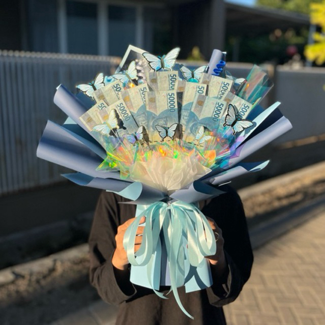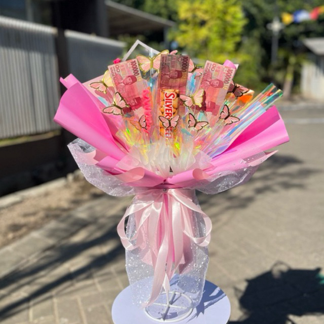 BUKET BUNGA KUPU KUPU LAMPU LED HADIAH ULANG TAHUN WISUDA VALENTINE
