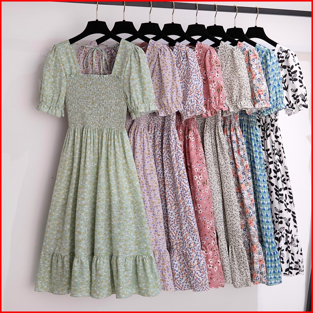 Casual Korean Style Bali Midi Dress Pantai Gamis Hitam Polos Wanita Baju Pesta Baju Perempuan Kekinian Daster Kerut Dada