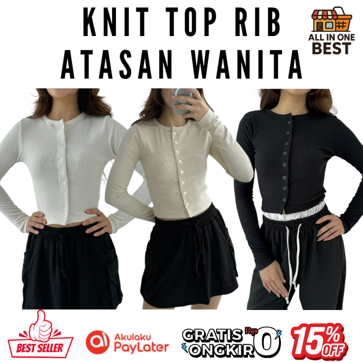 Atasan Wanita Kekinian Korean Style Terbaru Baju Wanita Knit Top Lengan Panjang Basic Long Sleeve Murah Best Seller