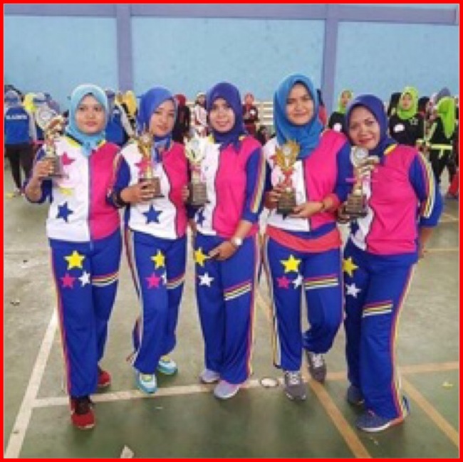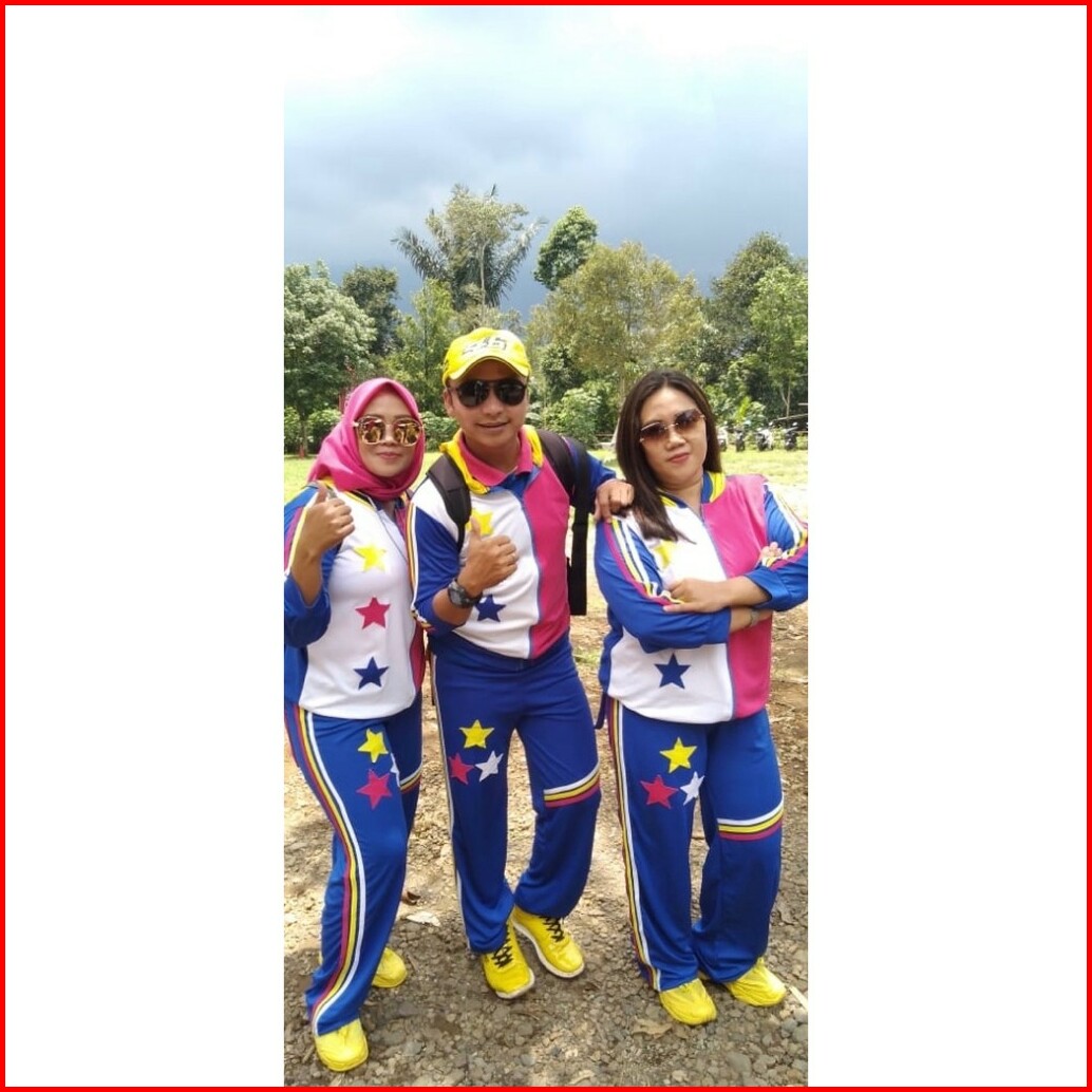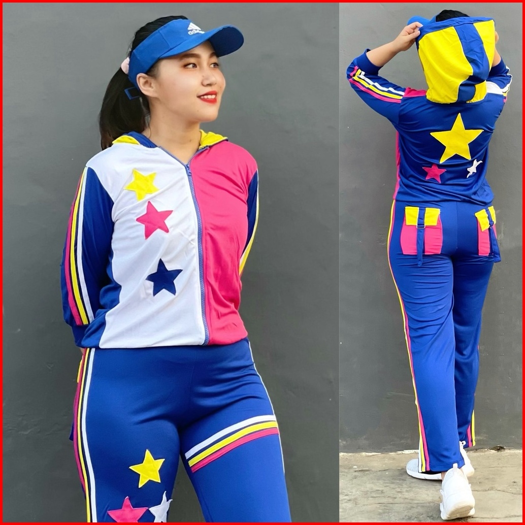 Setelan Baju Senam Lapangan Bintang Triple Biru Pelangi Set Baju Zumba Aerobik Olahraga Training Panjang Hijab Cycling G