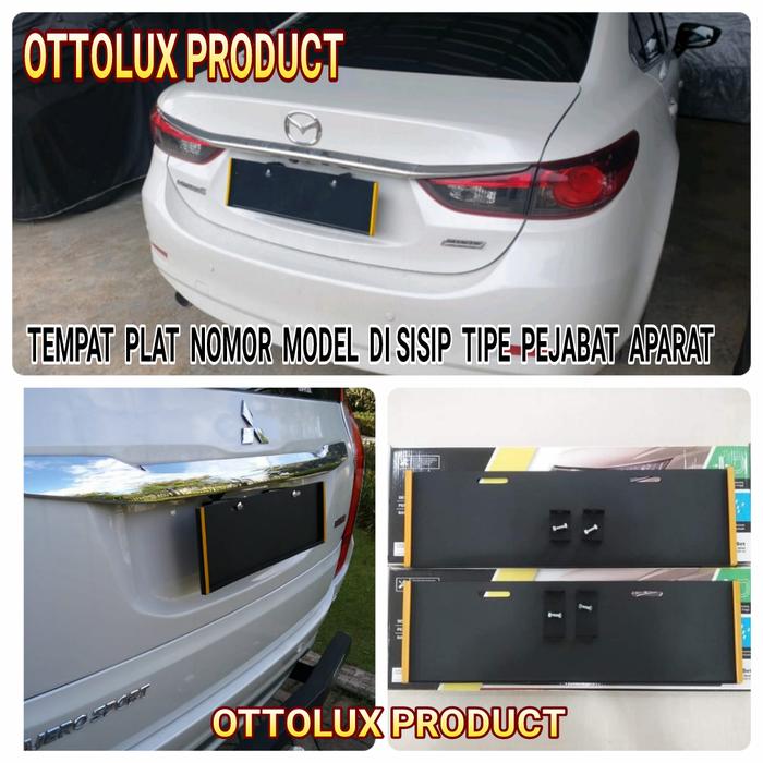 Dudukan Plat Nomor Mobil. Tipe : Tni - Polri. Plat Di Sisip Dari Atas - Hitam