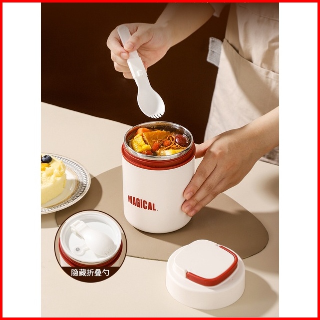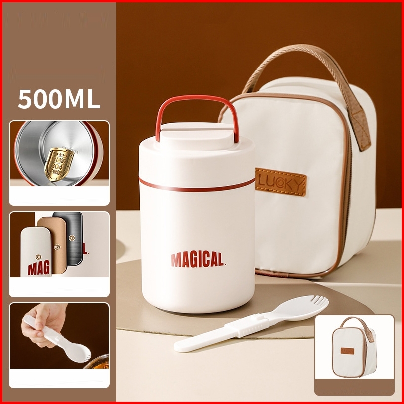 Termos Stainless Termos Sup Tempat Bekal Anti Tumpah 304 Mug Sup Stainless Steel Mug Sarapan Dengan Tutup Dan Sendok Mug